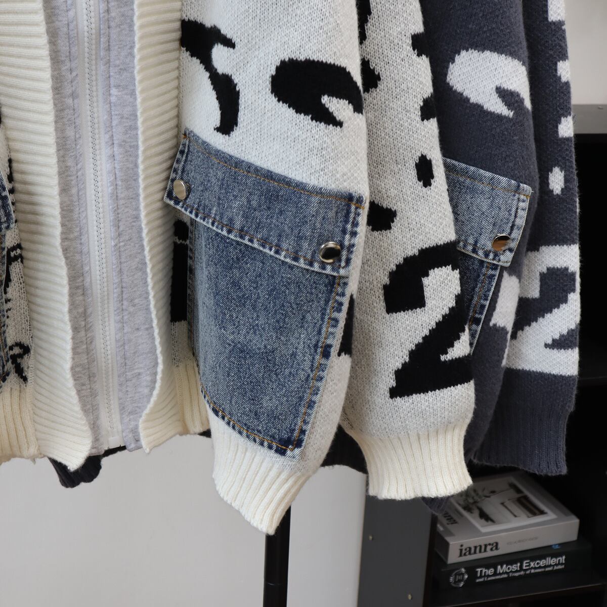 【outer】デニムポケット付きニットドッキングコート Q6338