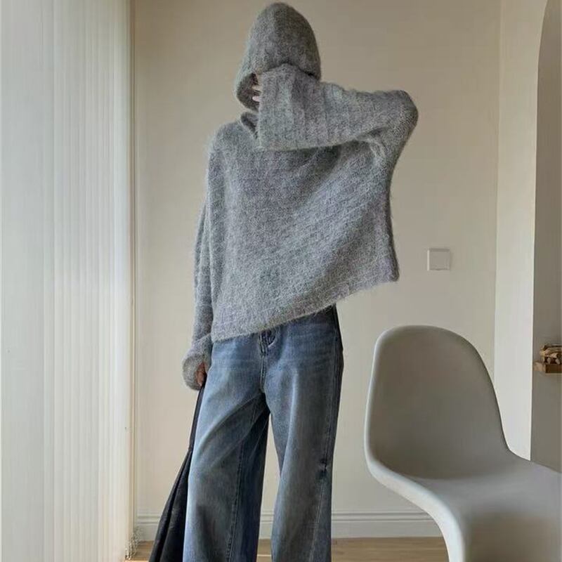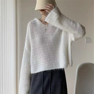 【tops】フード付きニットトップス Q6342