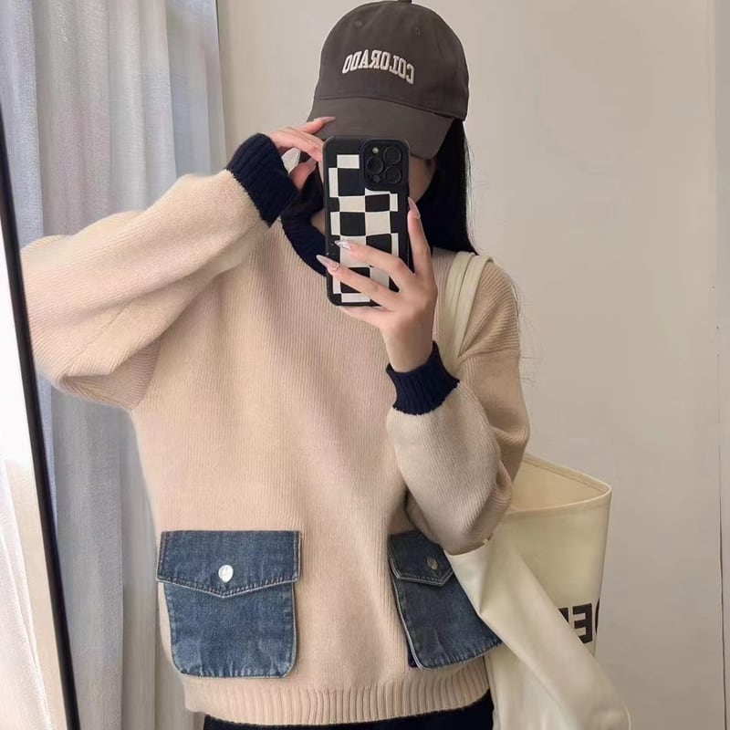 【tops】デニムポケット付きセーター Q6363
