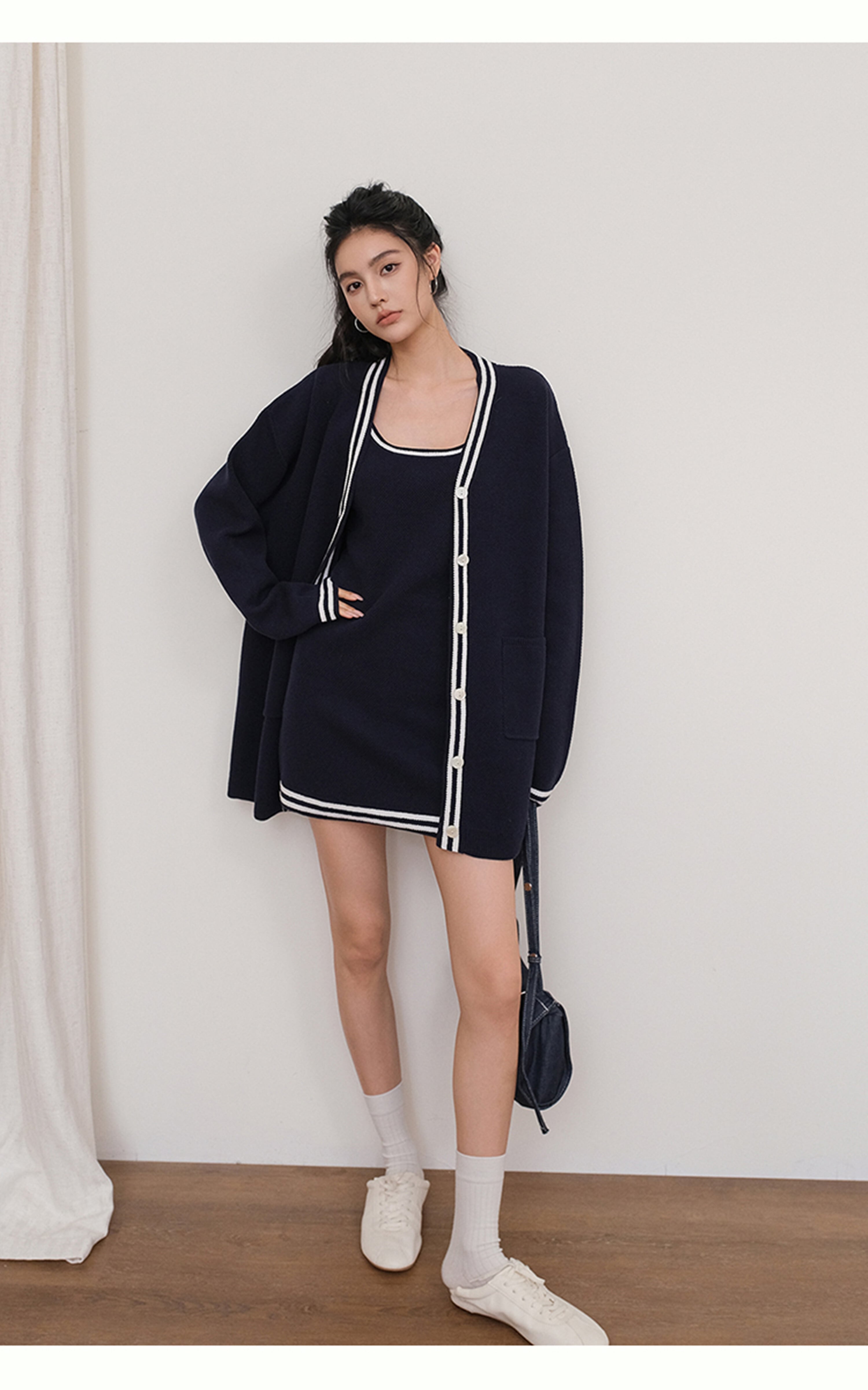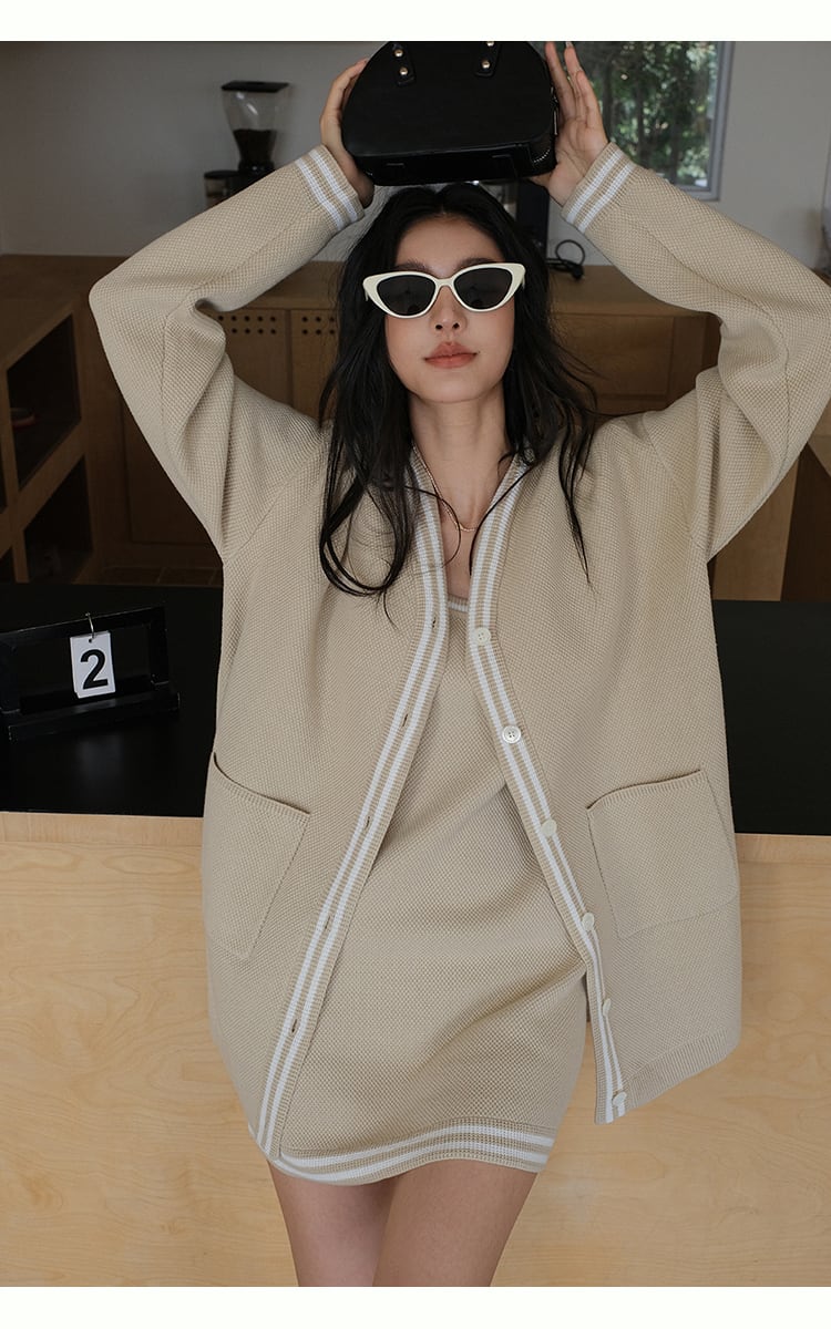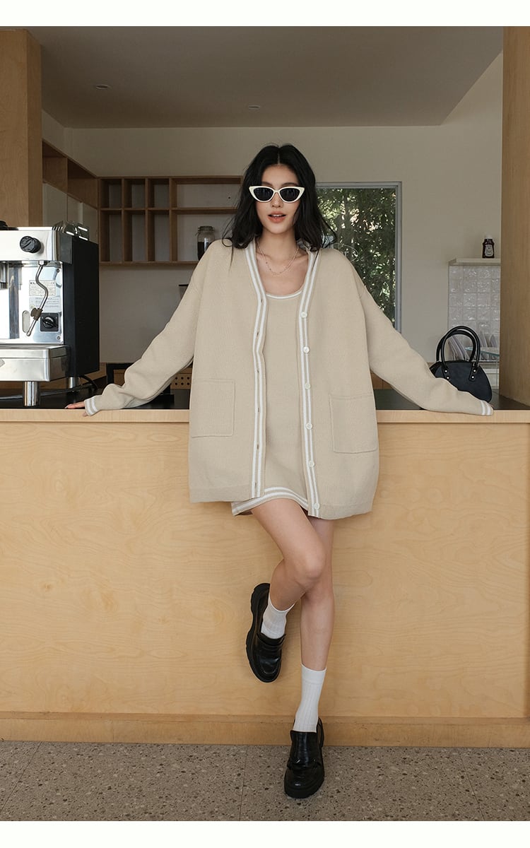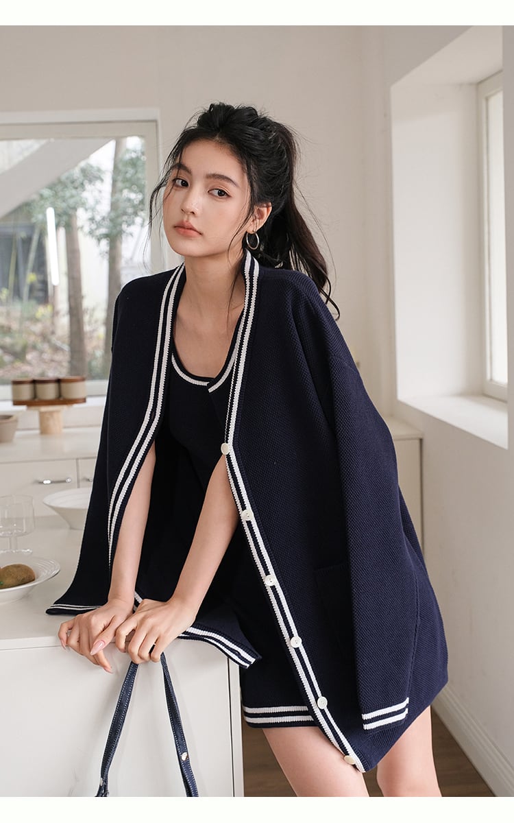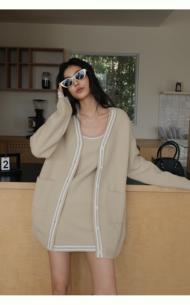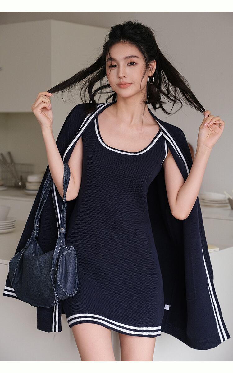 【set】カーディガン×ノースリーブミニワンピースセット K0505