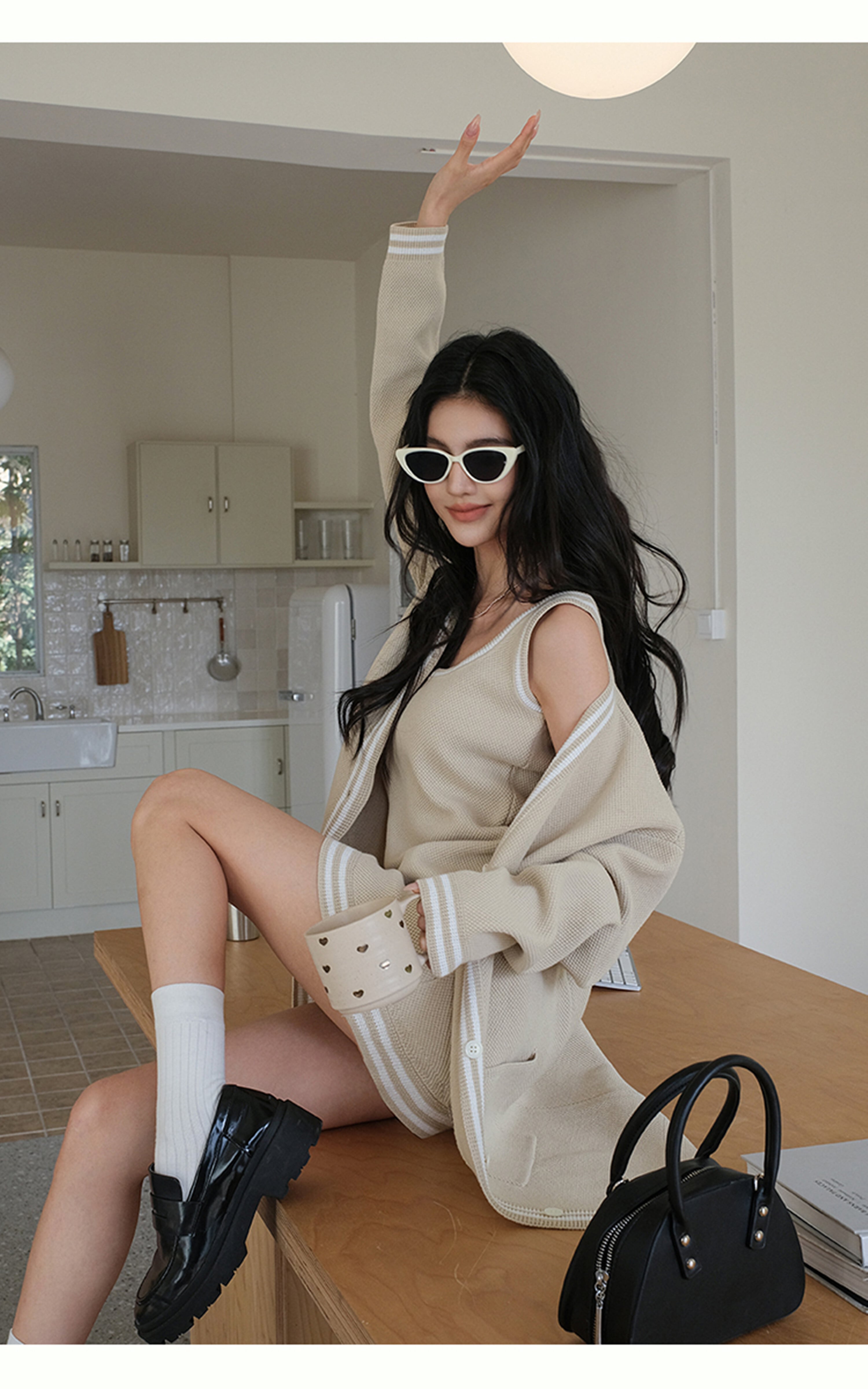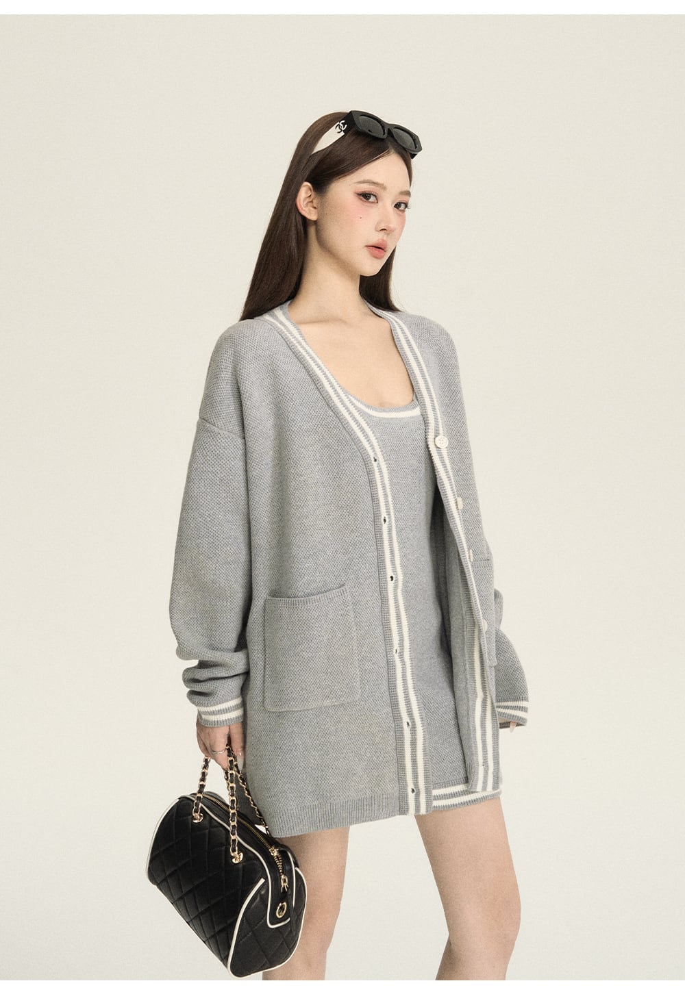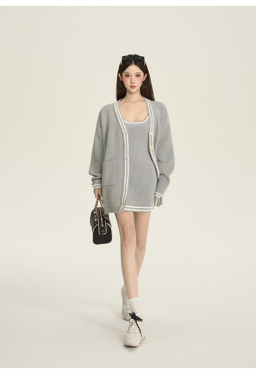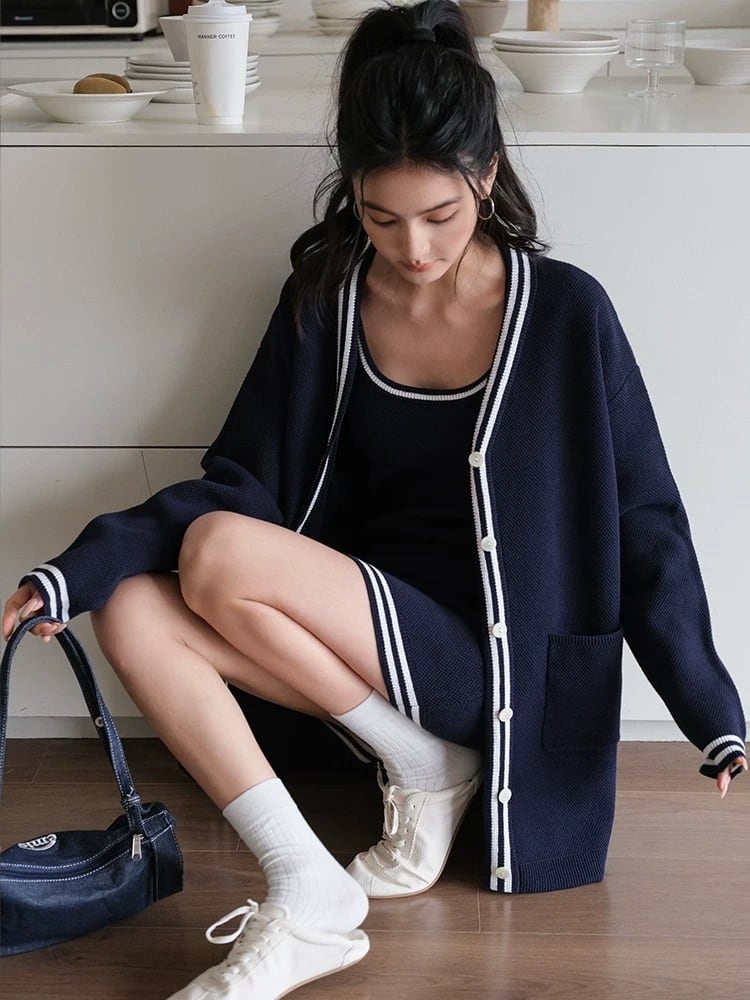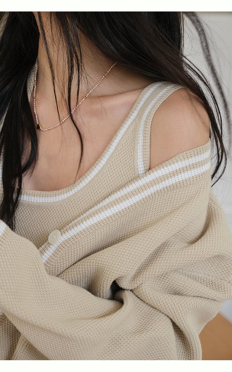 【set】カーディガン×ノースリーブミニワンピースセット K0505