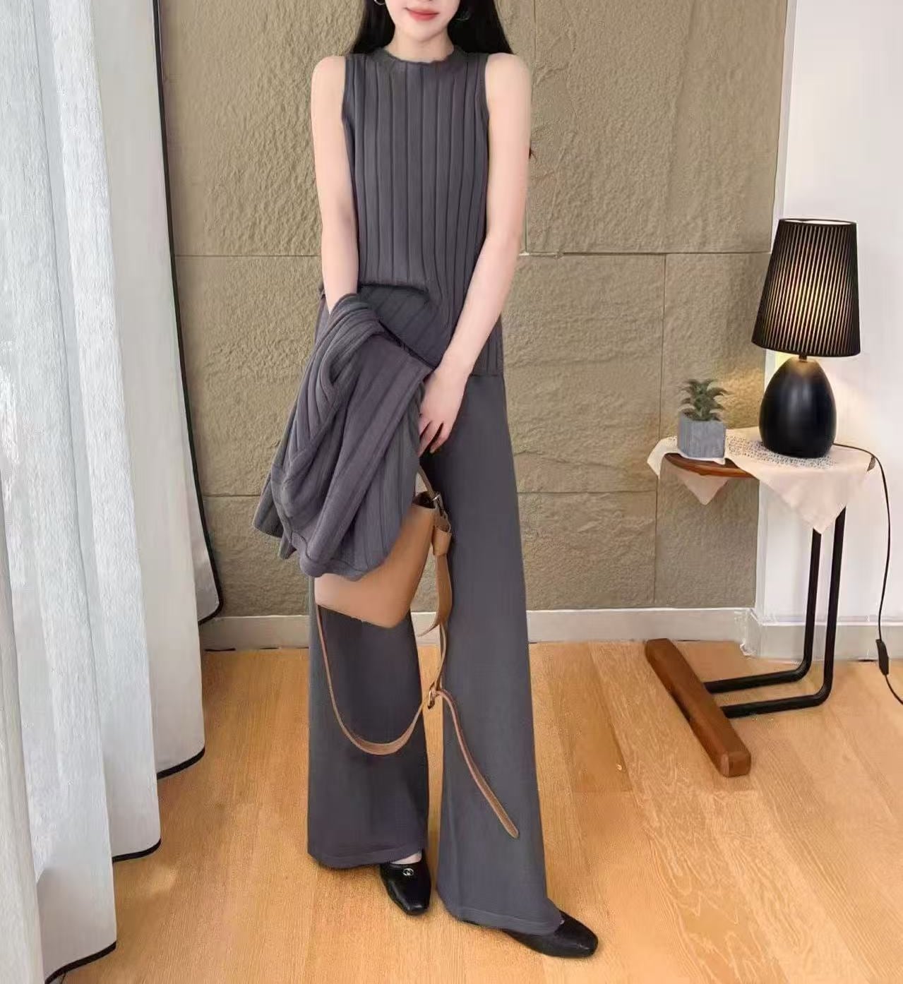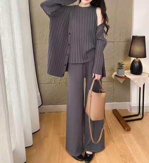 【set】ノースリーブトップス×パンツ×カーディガン3点セット Q6386
