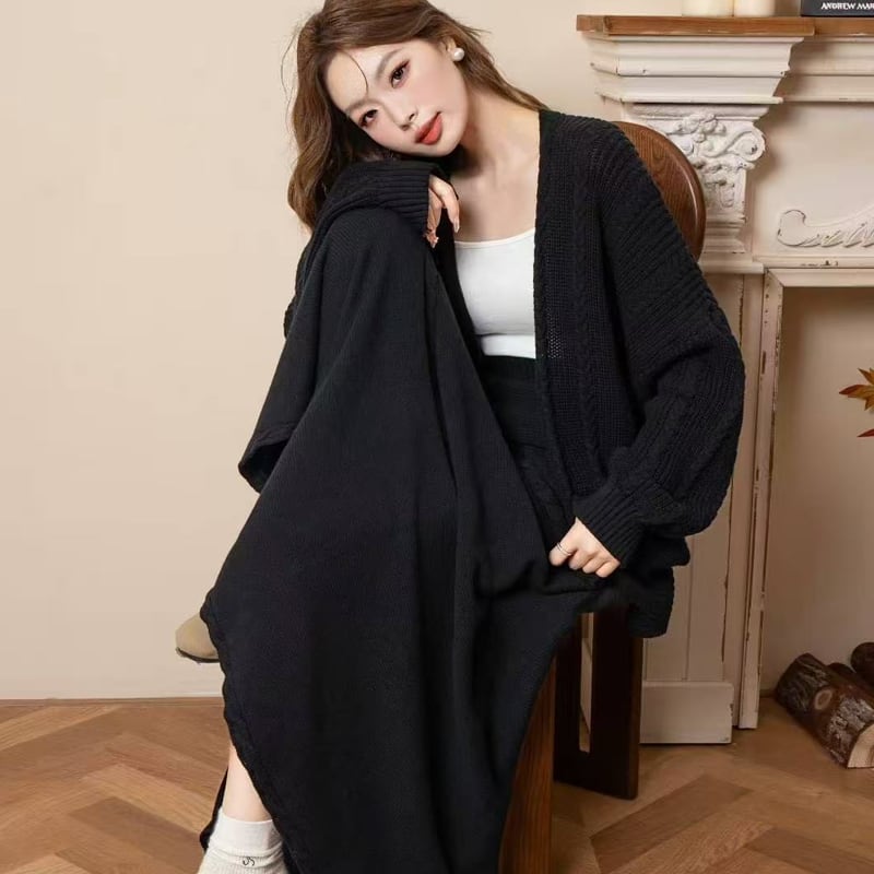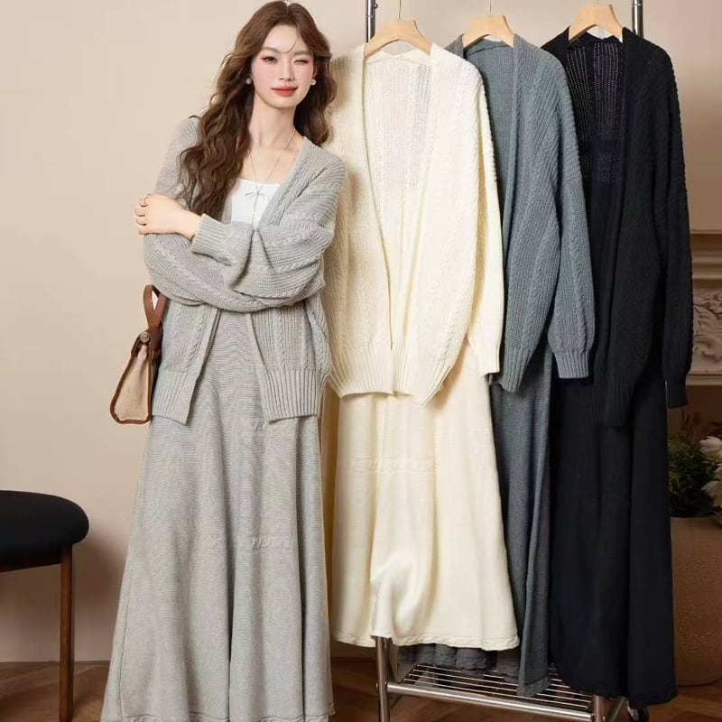 【set】ニットカーディガン×ロングスカートセット Q6393
