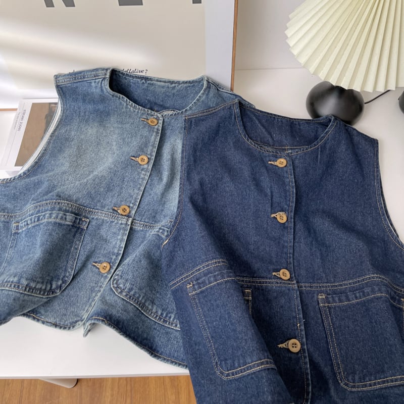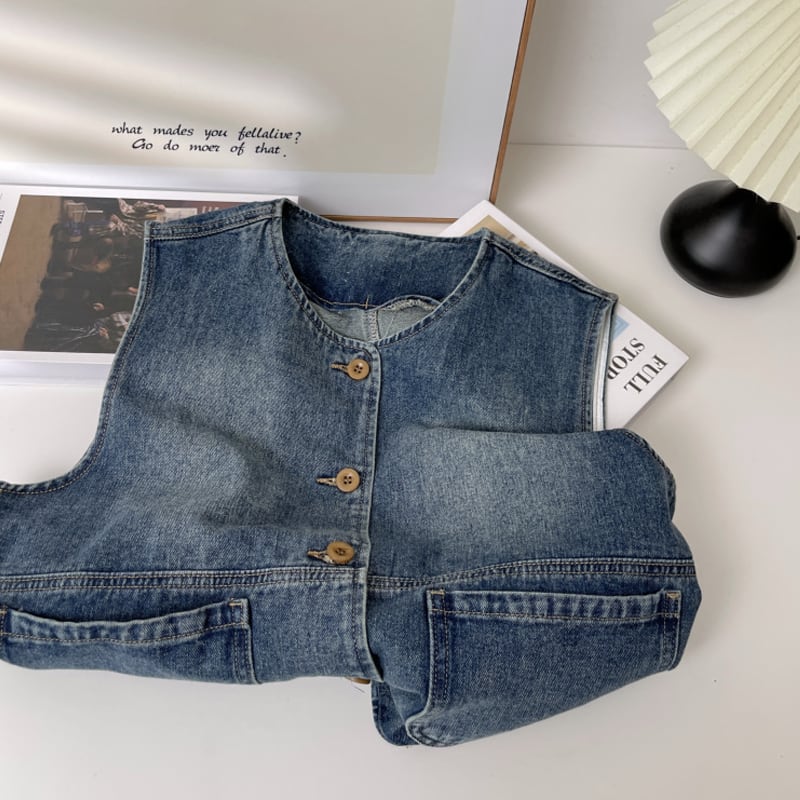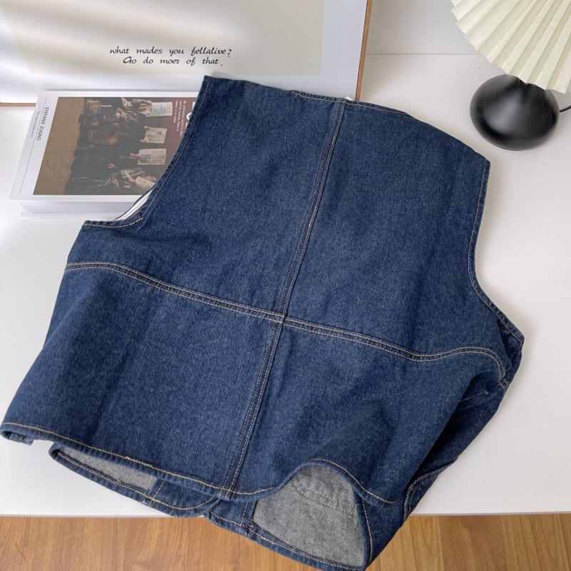 【tops】デニムベスト Q6404