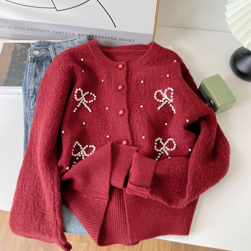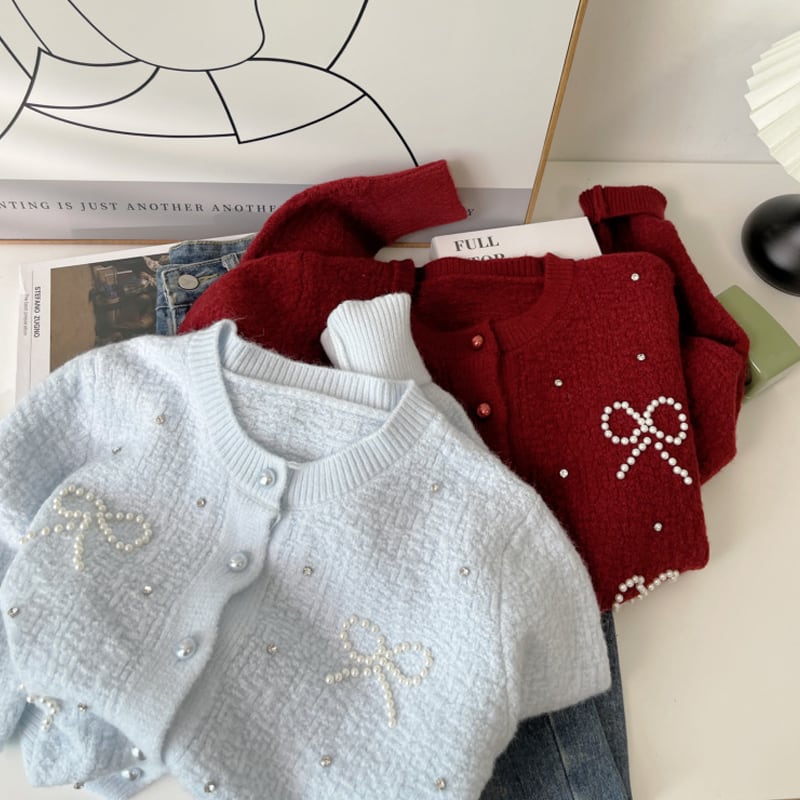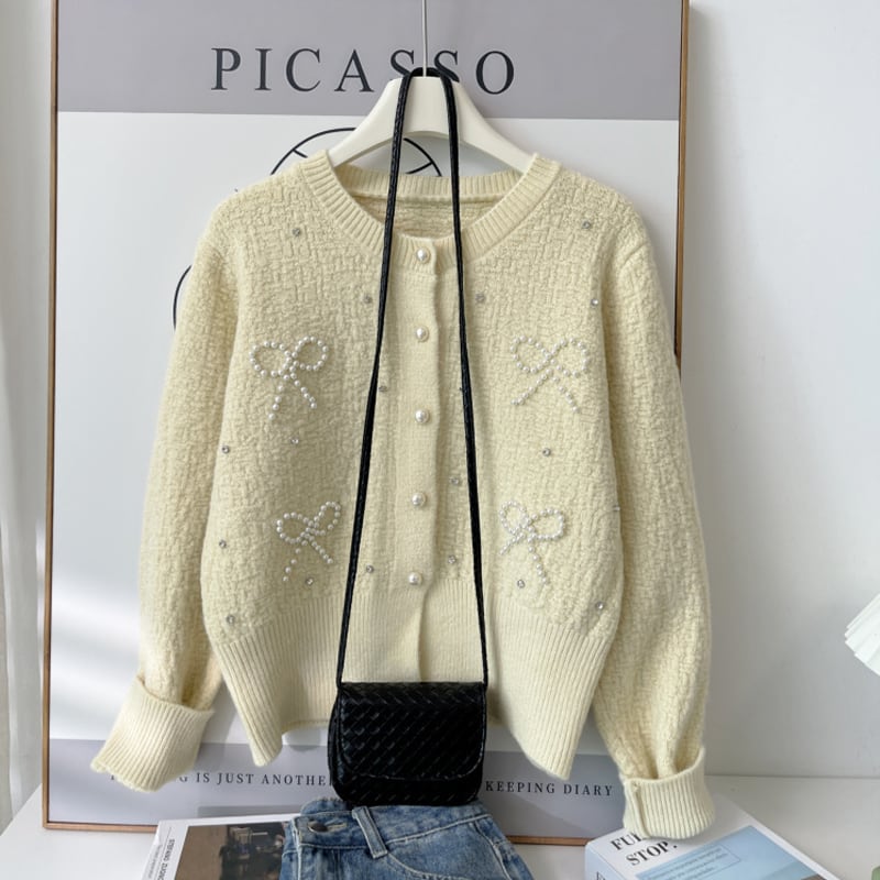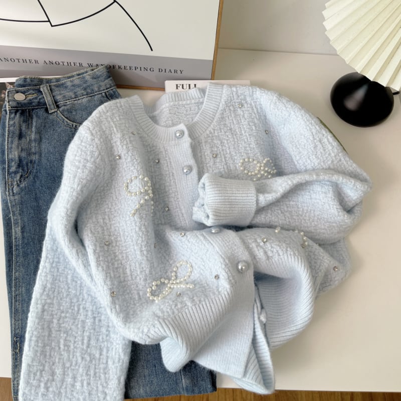 【outer】パールリボン付きカーディガン Q6408