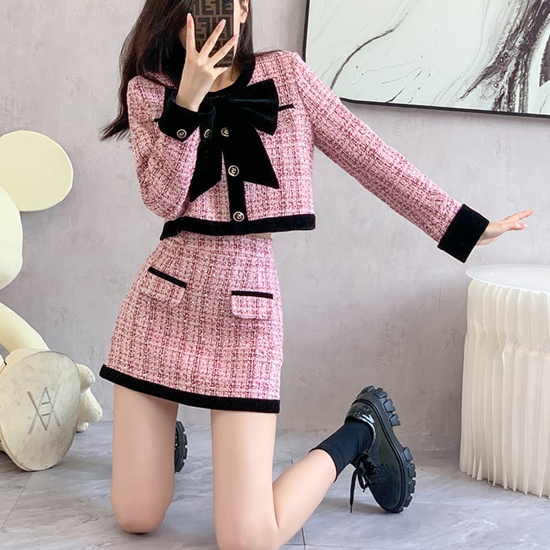 【set】ビッグリボン付きトップス×ミニスカートセット Q6409