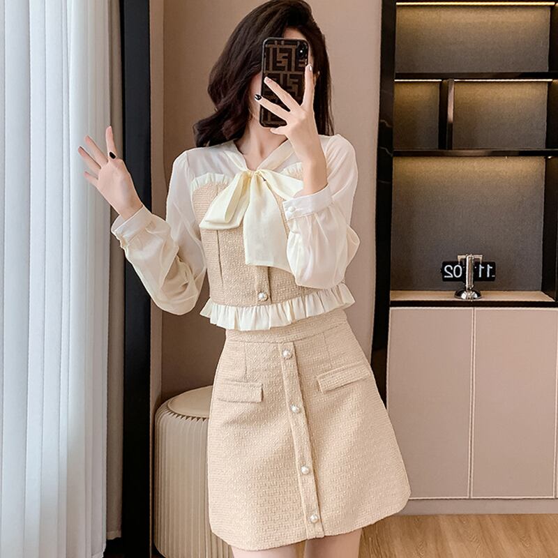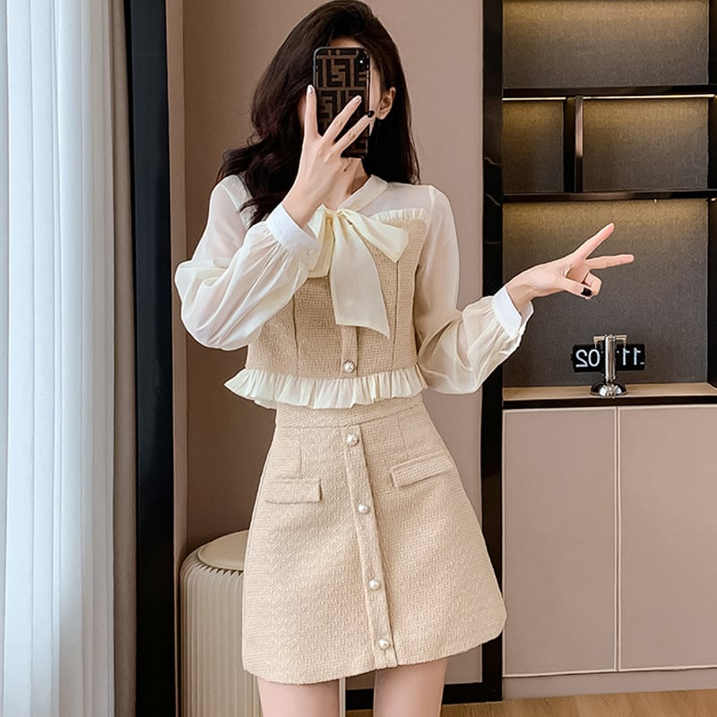 【set】シアードッキングトップス×ミニスカートセット Q6410