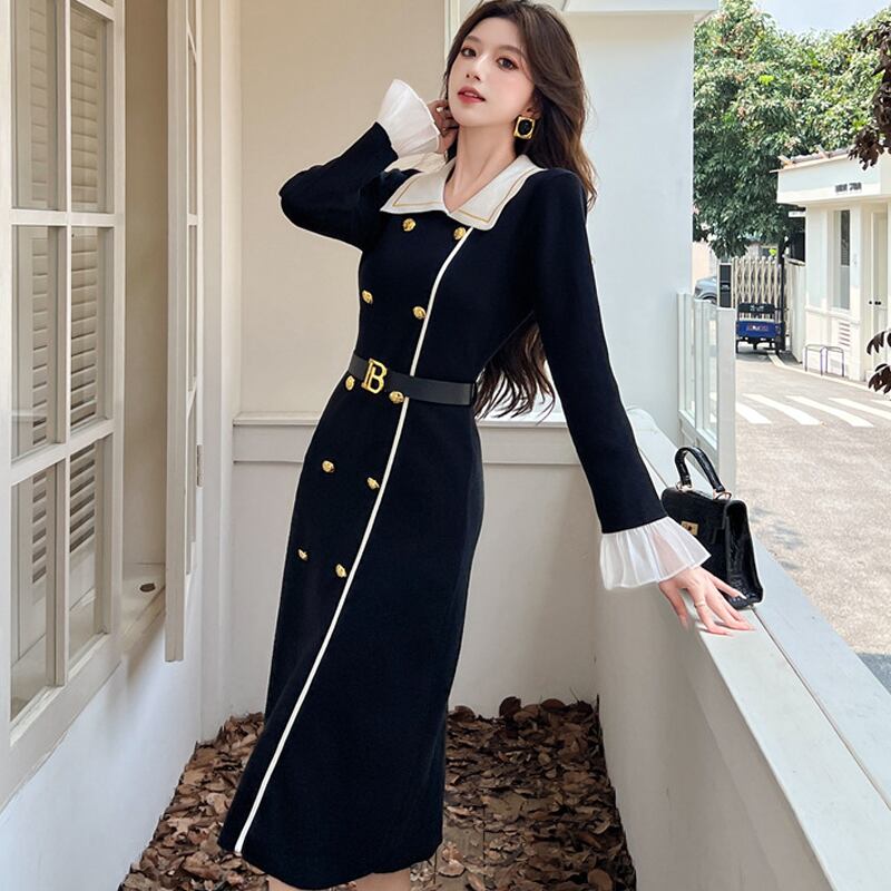 【dress】チュールドッキングニットワンピース Q6412