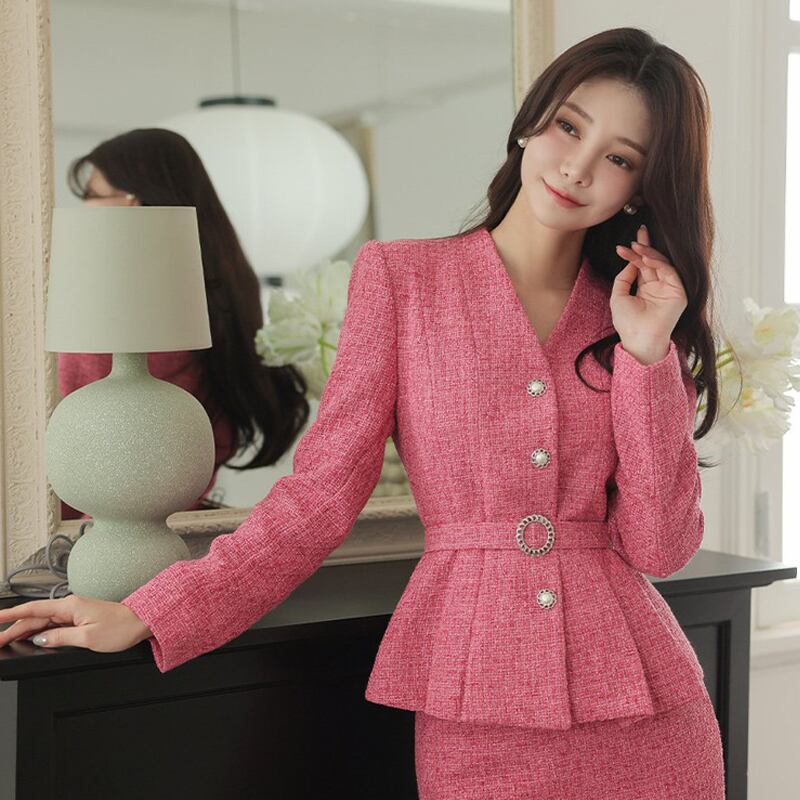 【set】Vネックコート×タイトスカートセット Q6414