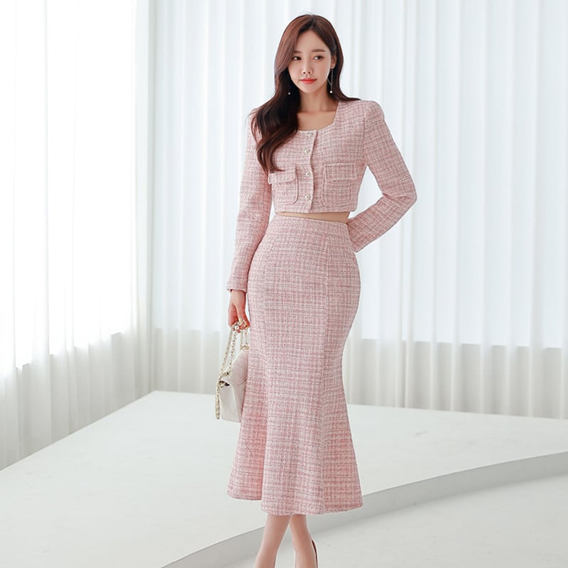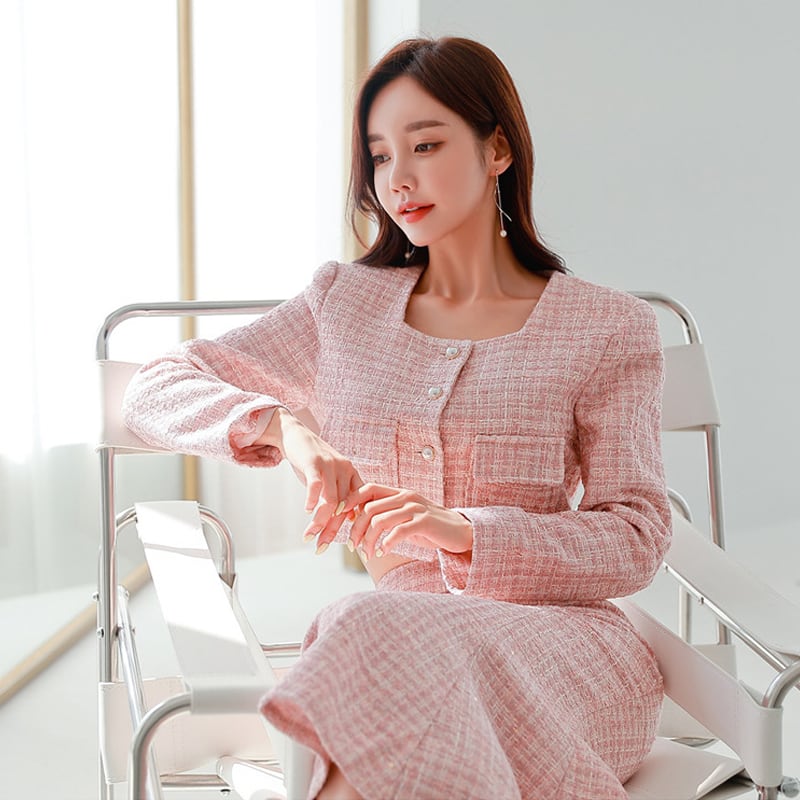 【set】スクエアネックコート×ロングスカートセット Q6415