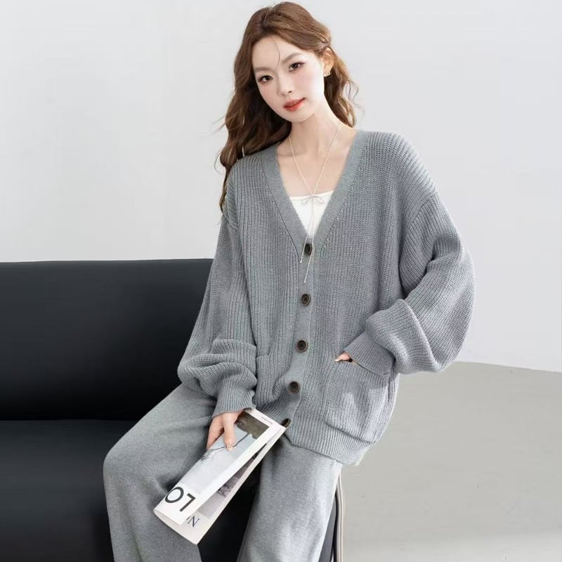 【set】Vネックカーディガン×ワイドパンツセット Q6440