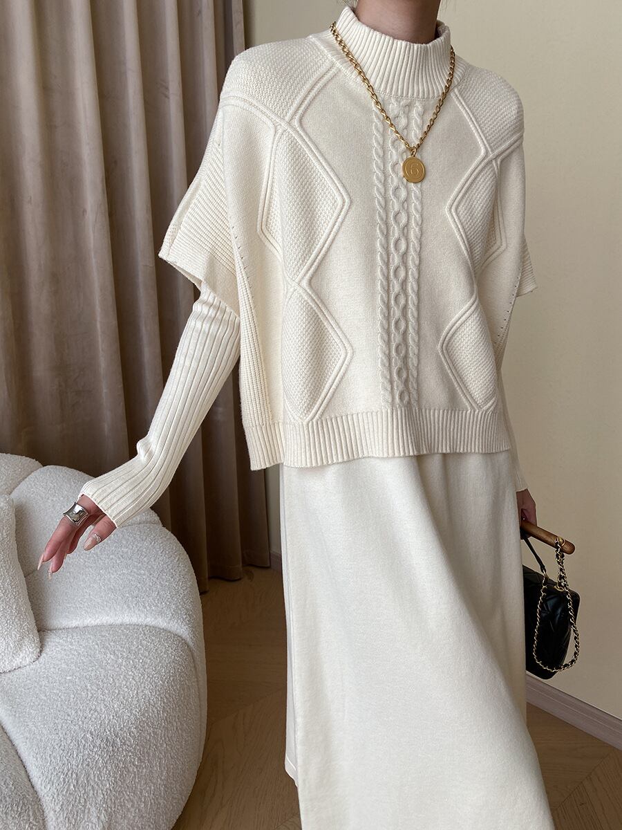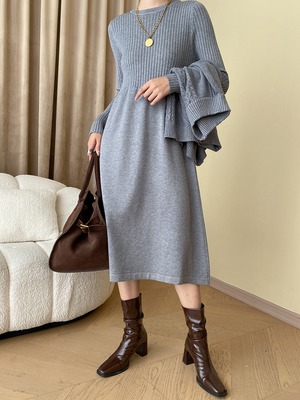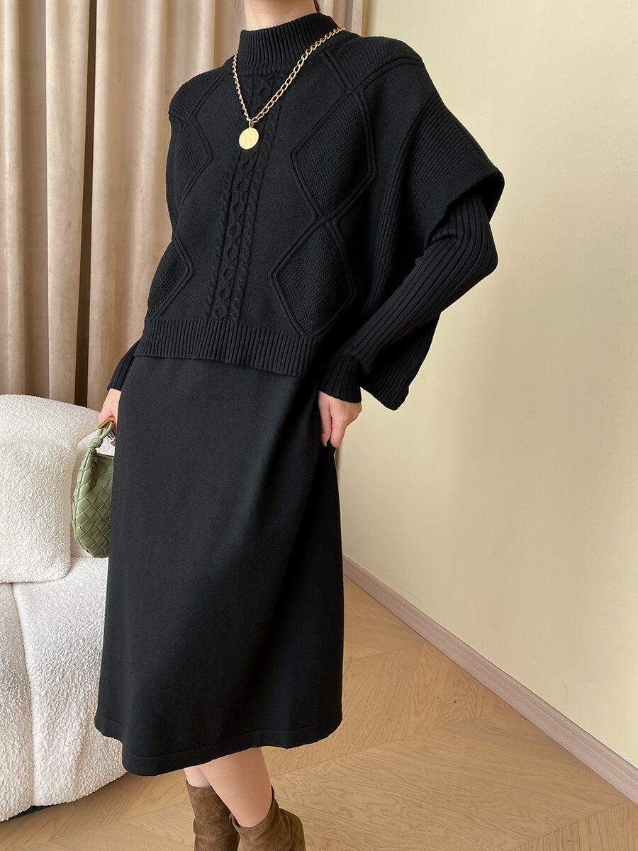【set】半袖ニットトップス×ワンピースセット Q6448