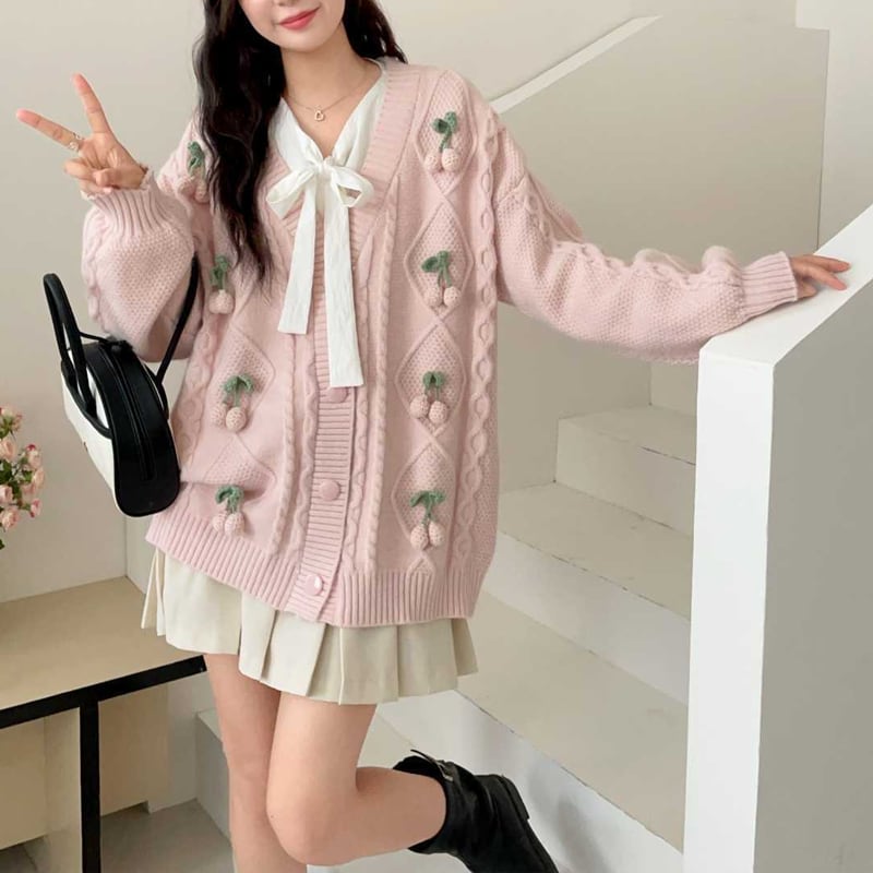 【outer】サクランボ柄カーディガン Q6452