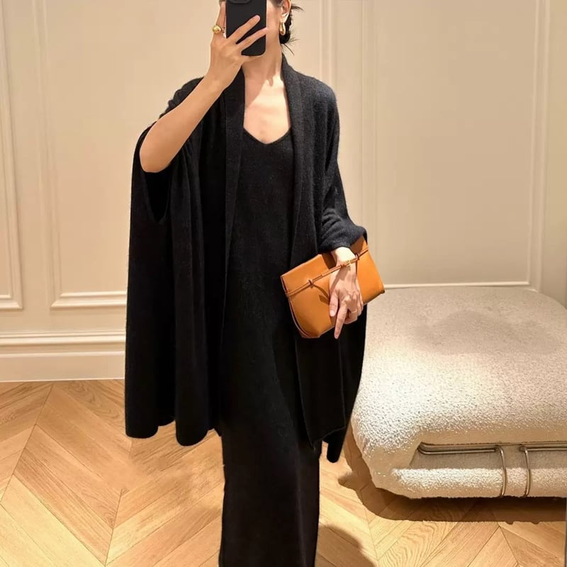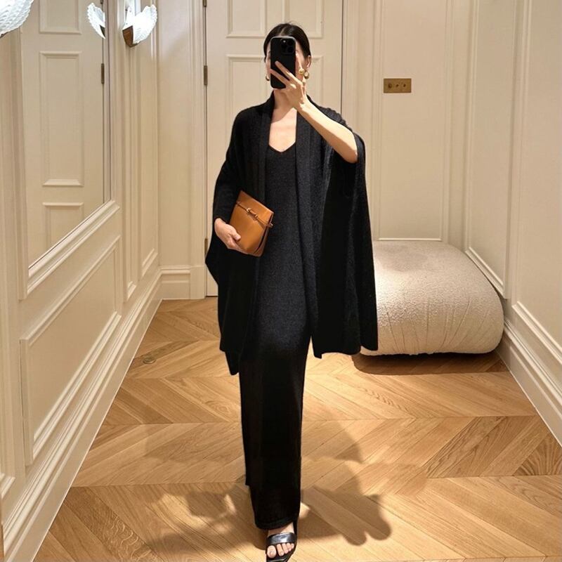 【set】ロングカーディガンー×キャミワンピースセット Q6462