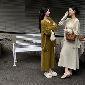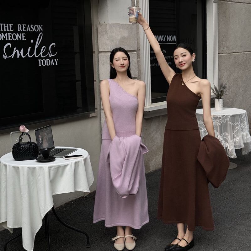 【set】ワンショルダーベスト×カーディガン×スカート3点セット Q6527