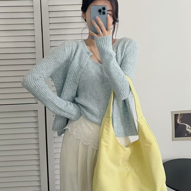 【set】レースドッキングキャミ×カーディガンセット Q6541