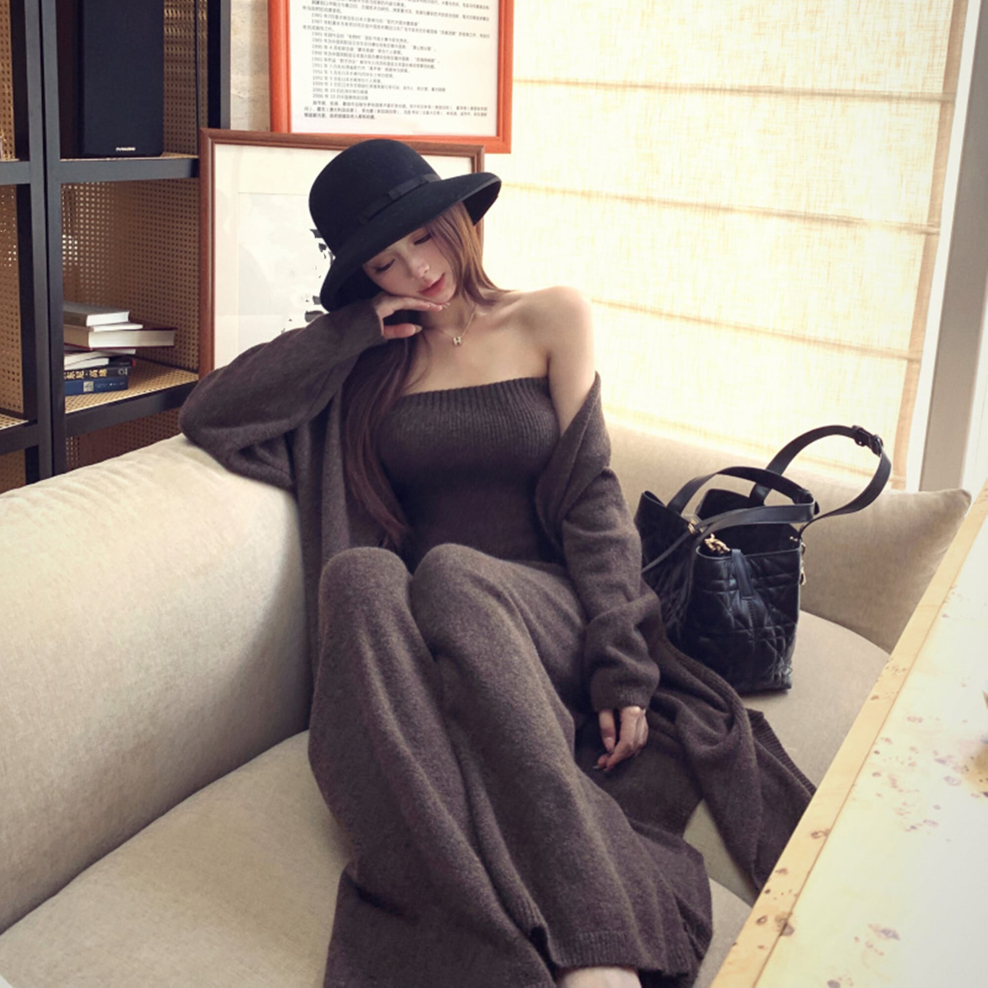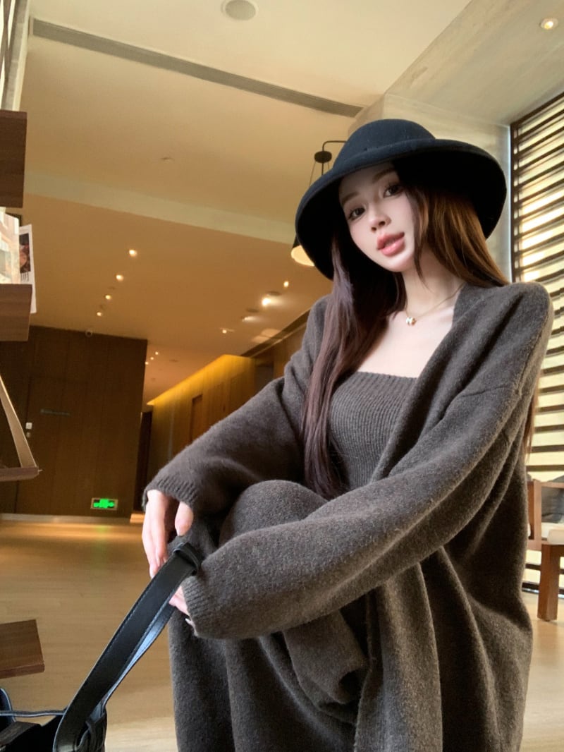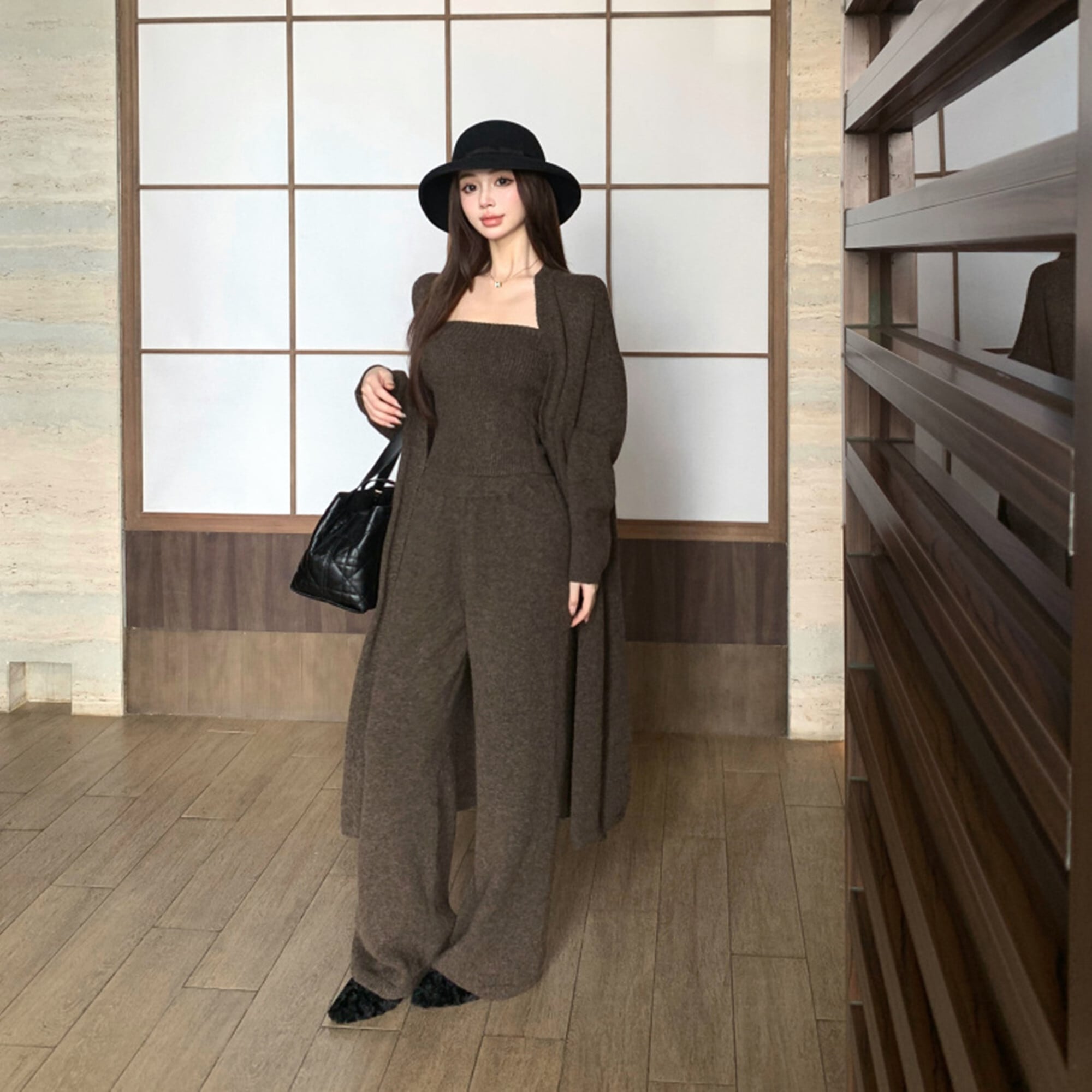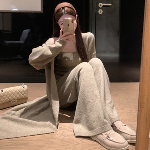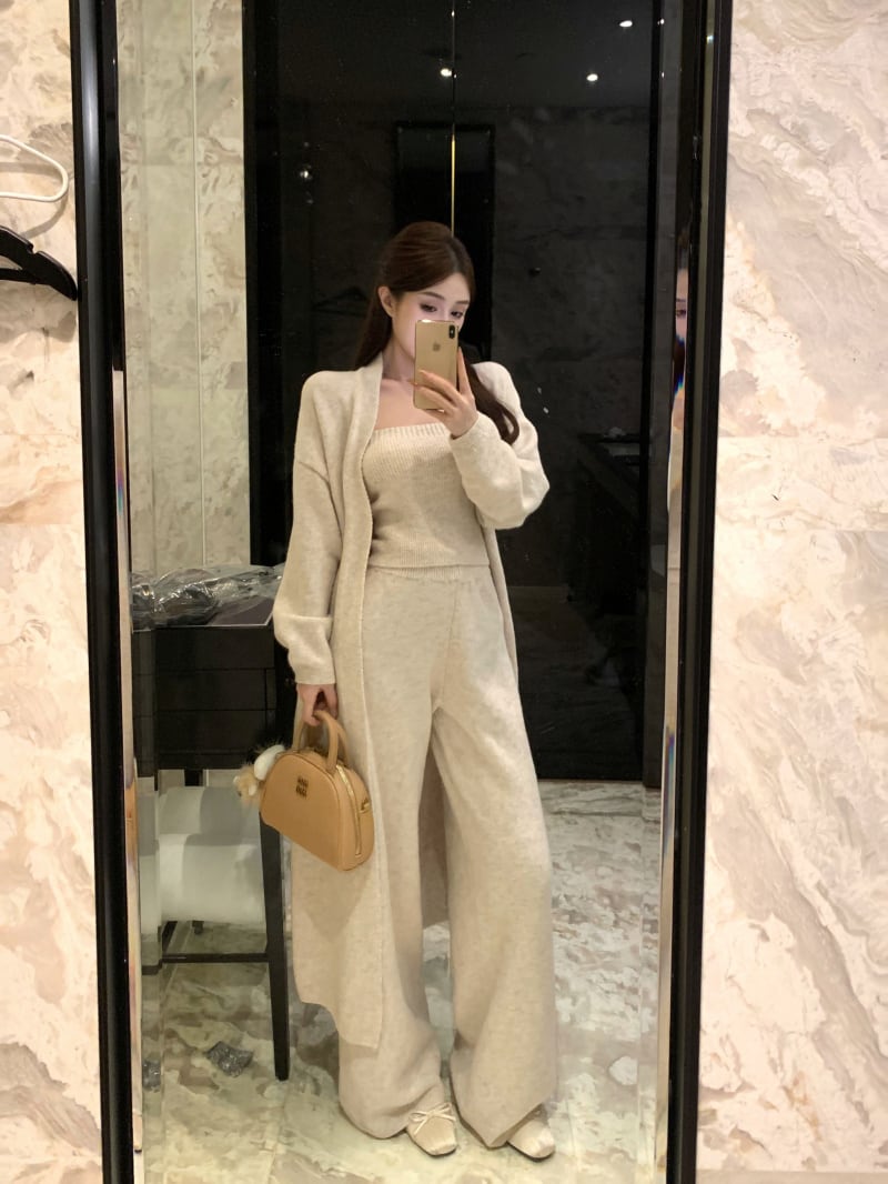 【set】ロング丈カーディガン×ベアトップ×ワイドパンツ3点セット N3329