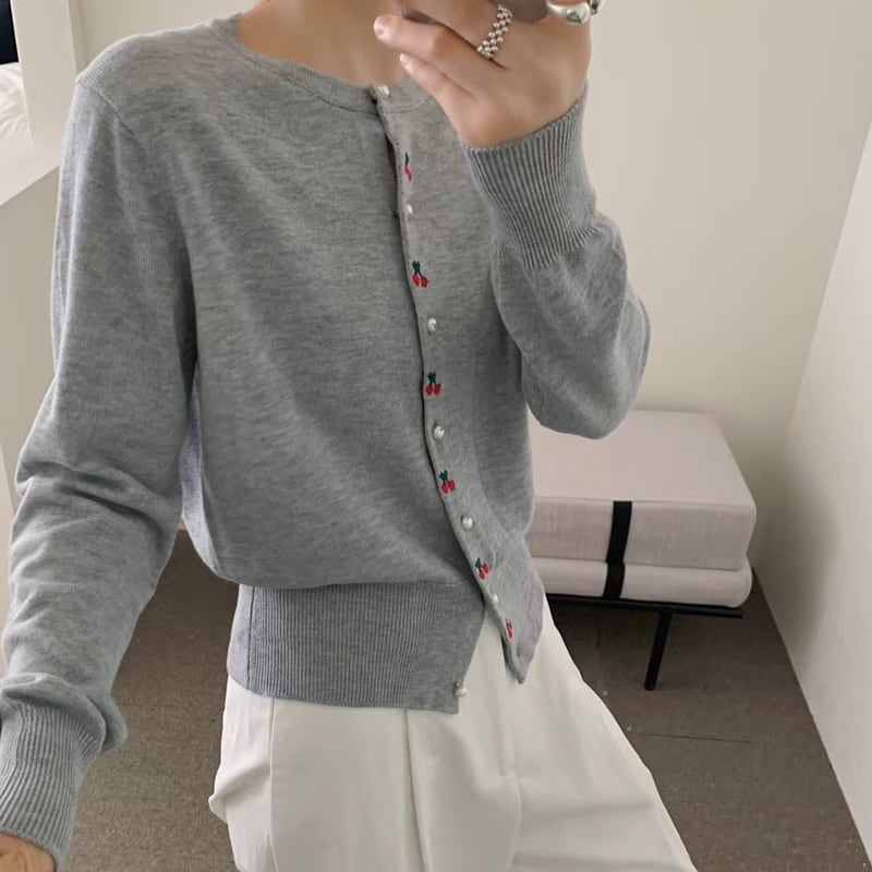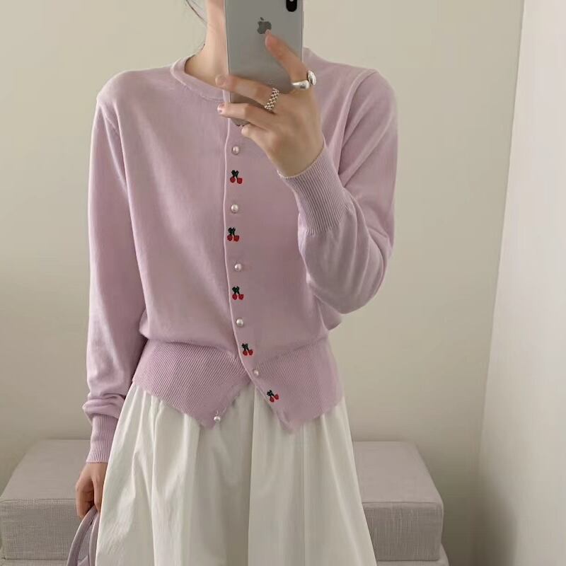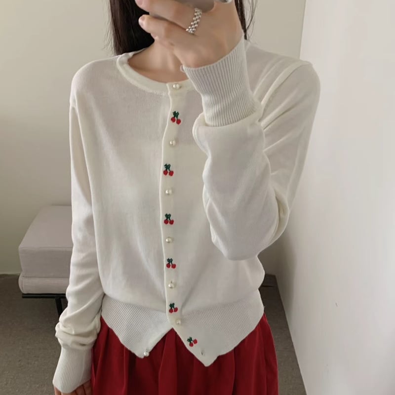 【tops】サクランボ柄ニットトップス Q6561
