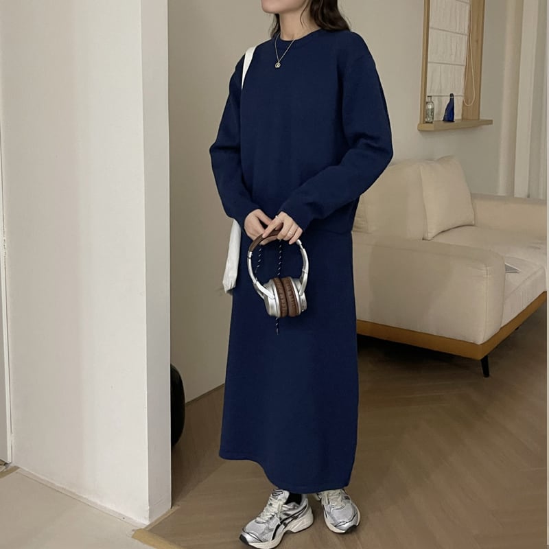 【set】チャック柄ドッキングセーター×スカートセット Q658