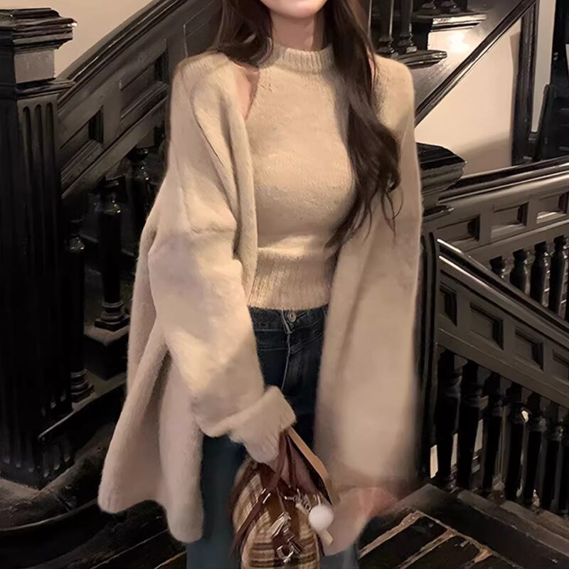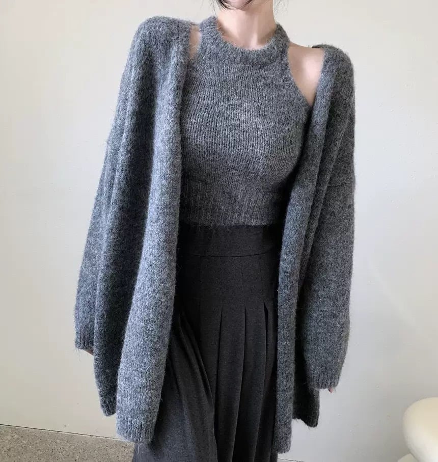 【set】ノースリーブトップス×カーディガンセット Q6597