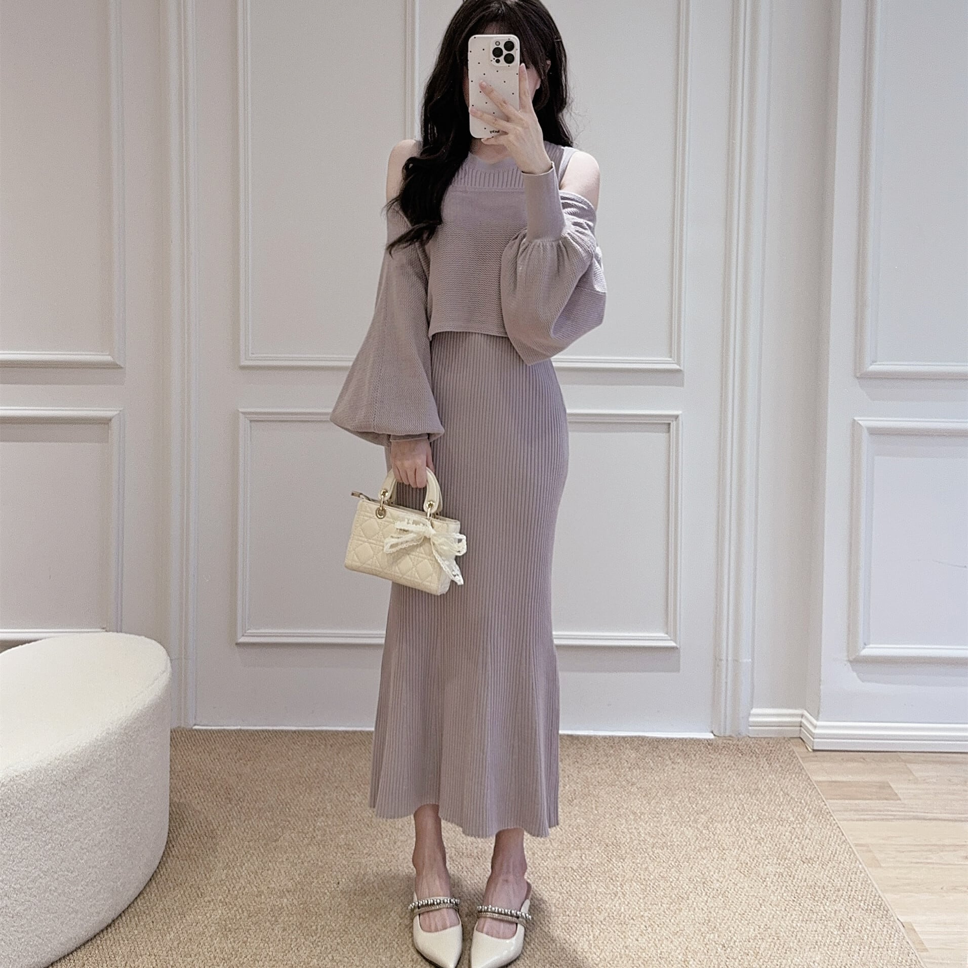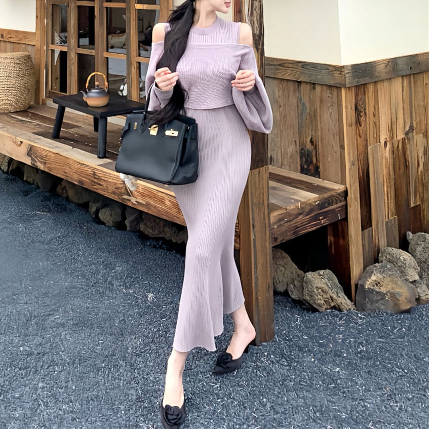4WAYのスタイリングが楽しめるニットワンピースセット。