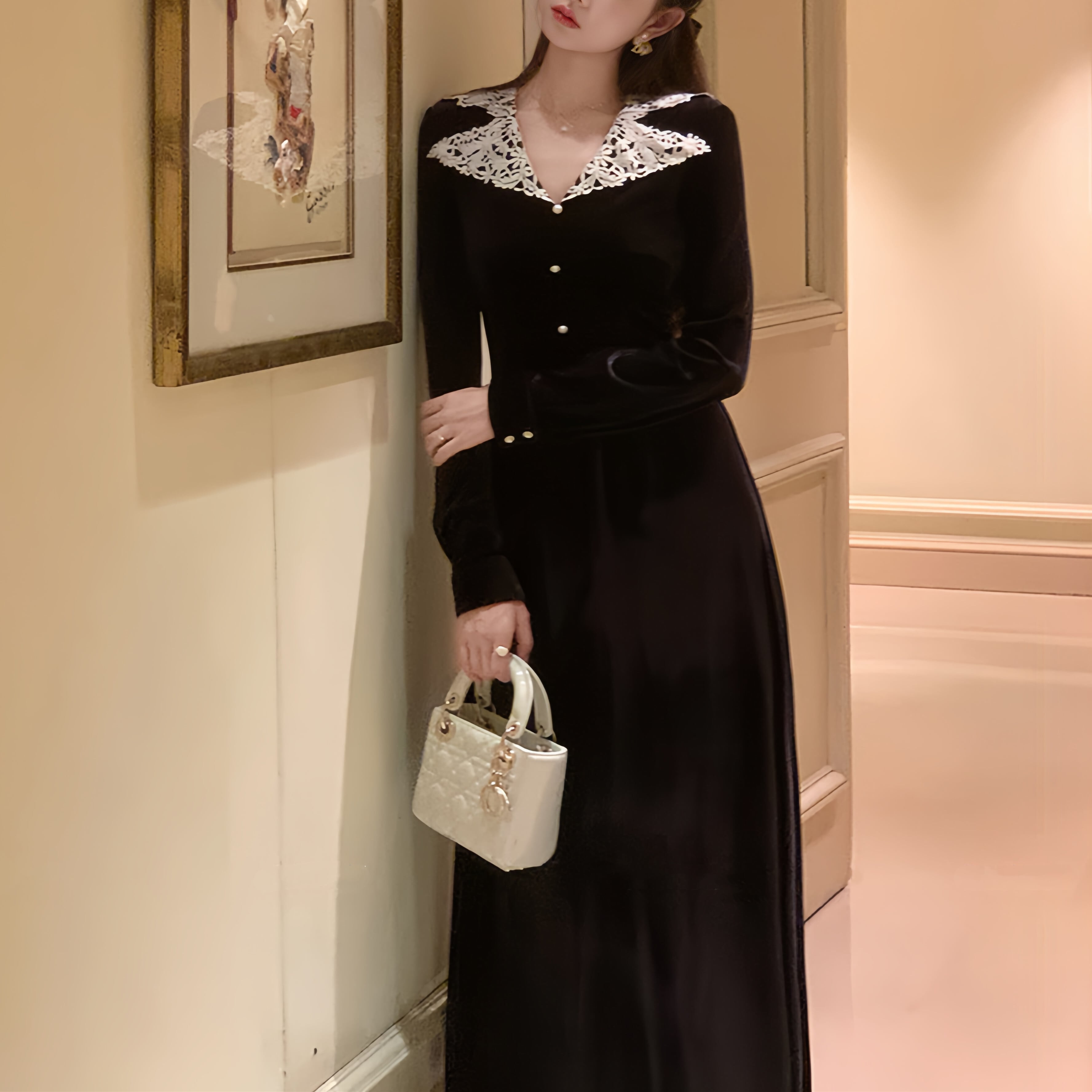 【dress】レースカラーロングワンピース N3341