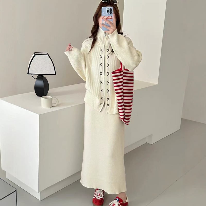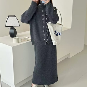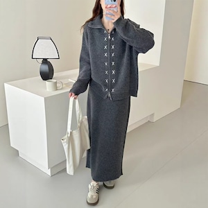 【set】Wジップカーディガン×ロングスカートセット Q6620