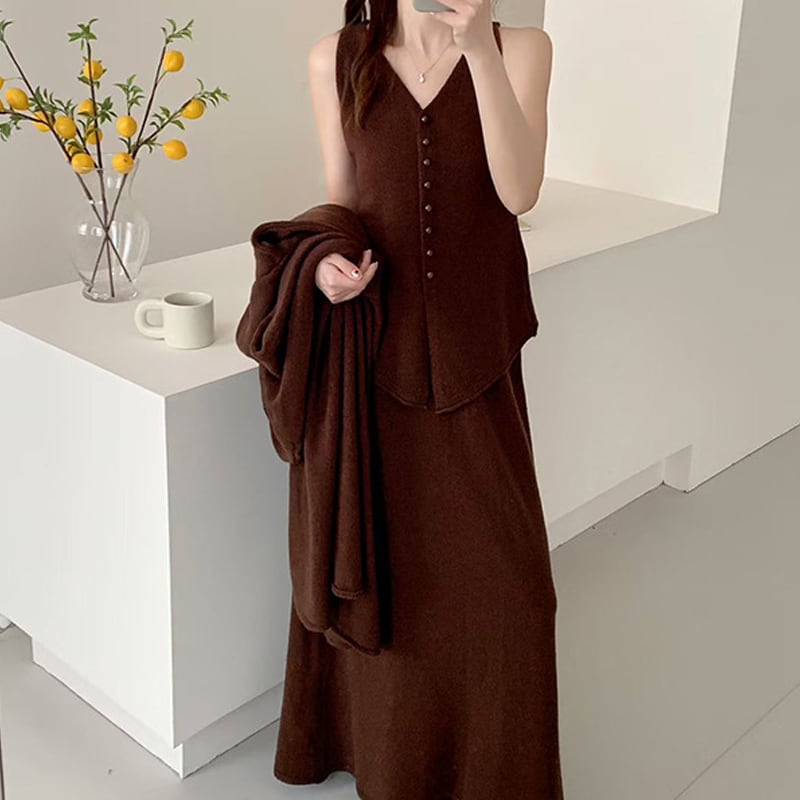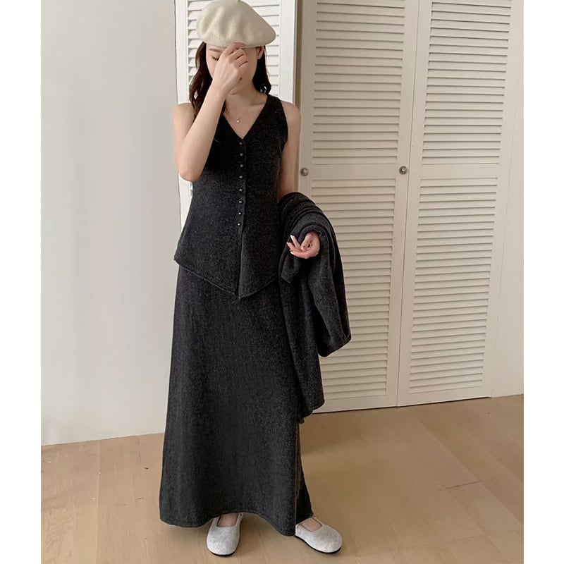 【set】ベスト×カーディガン×スカート3点セット Q6625