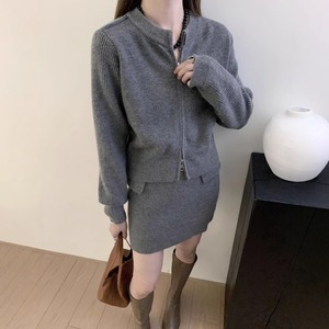 【set】Wジップカーディガン×スカートセット Q6634