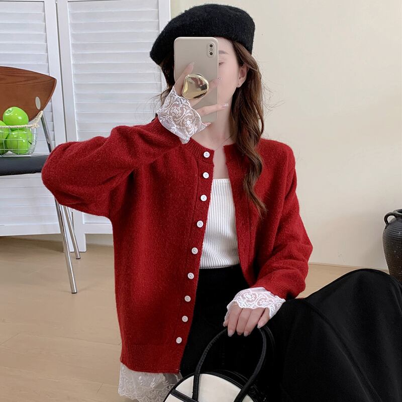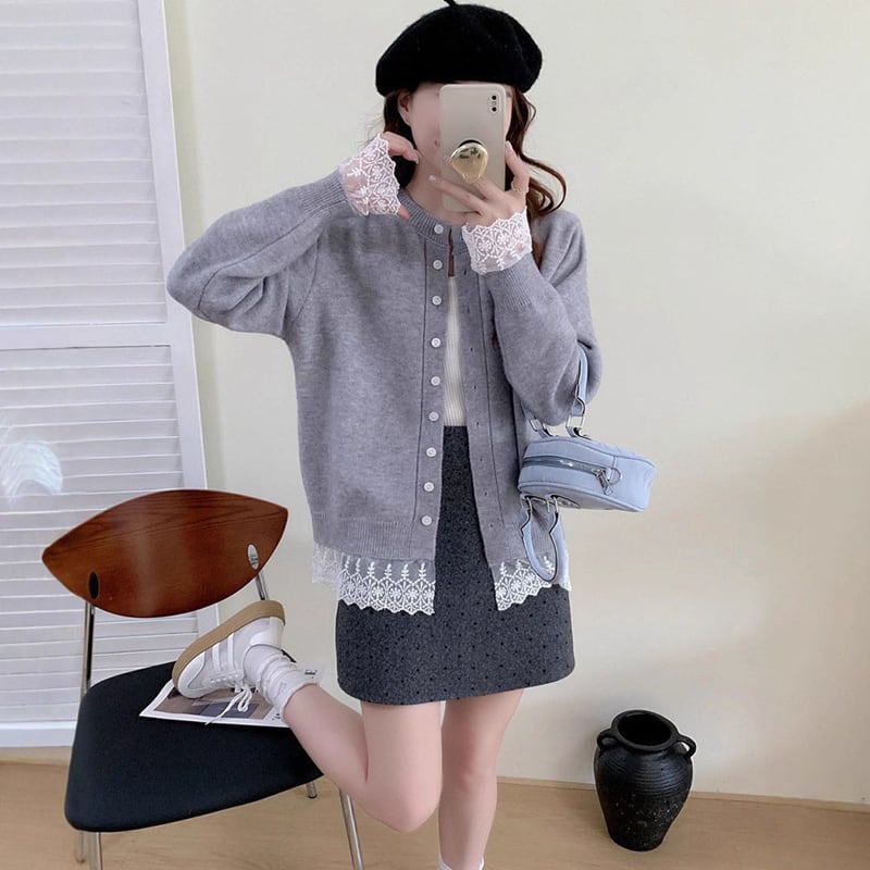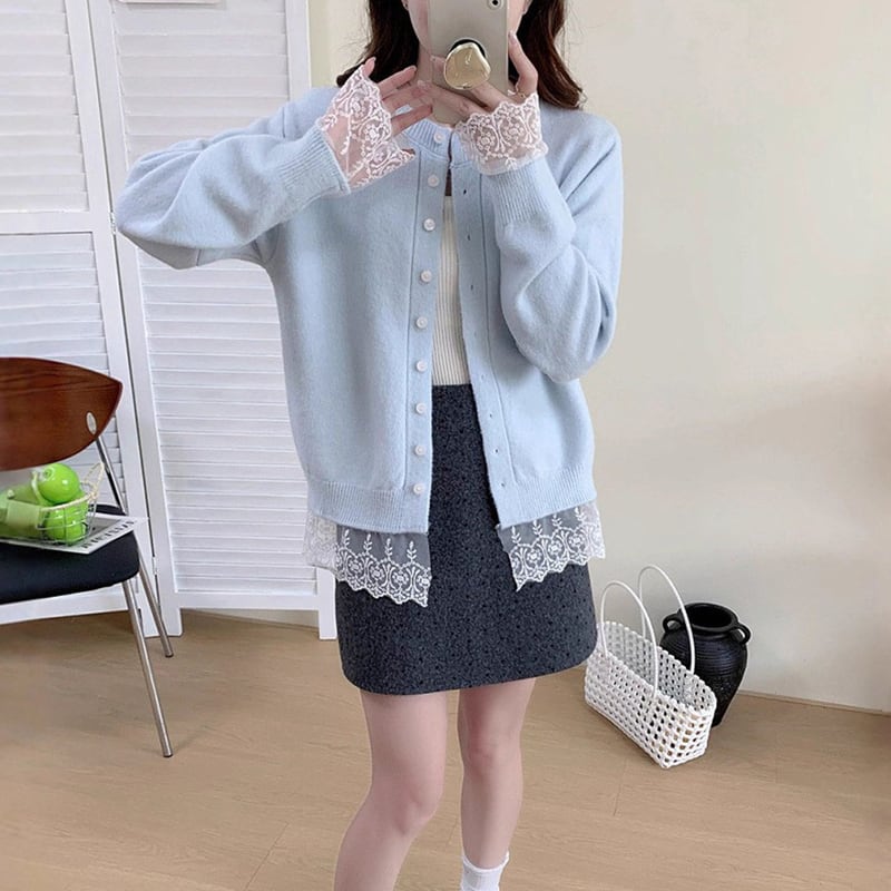 【outer】レースドッキングニットカーディガン Q6635