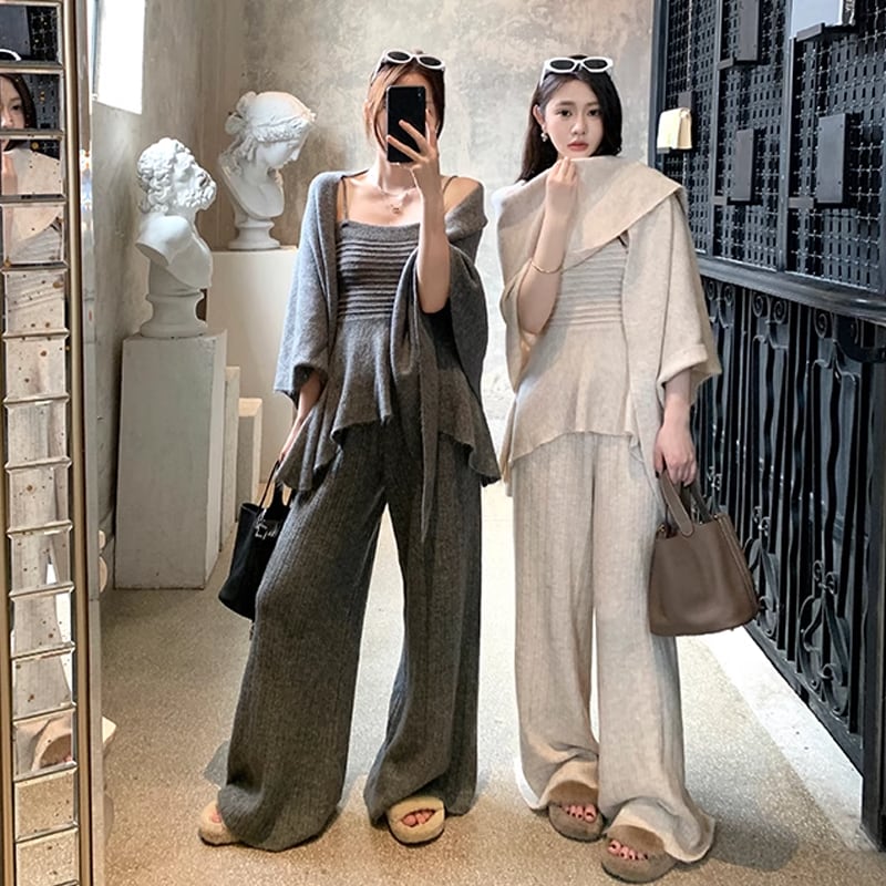 【set】ショール×キャミソール×ワイドパンツ3点セット Q6638