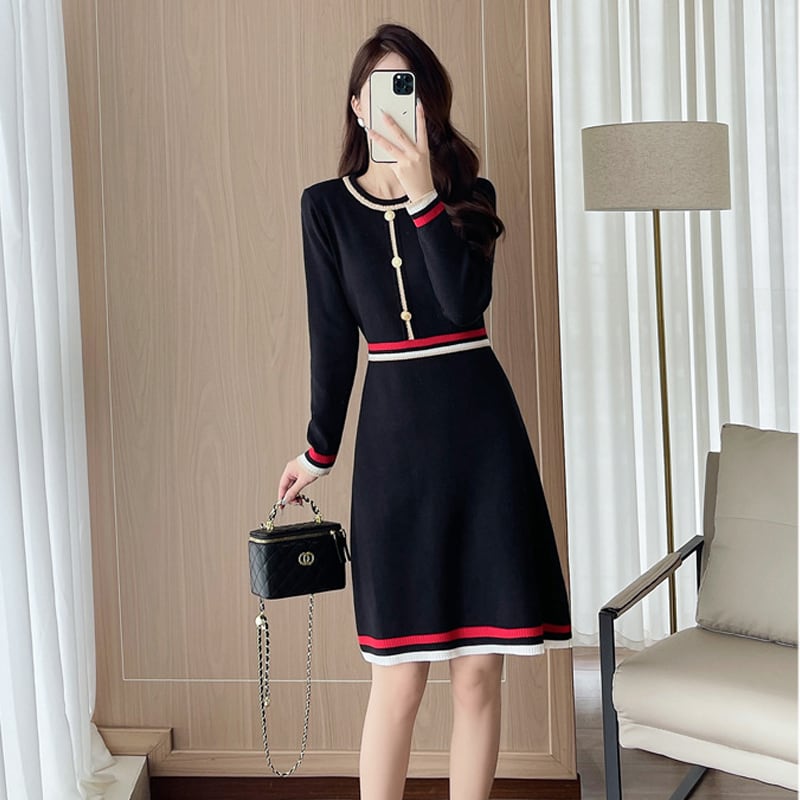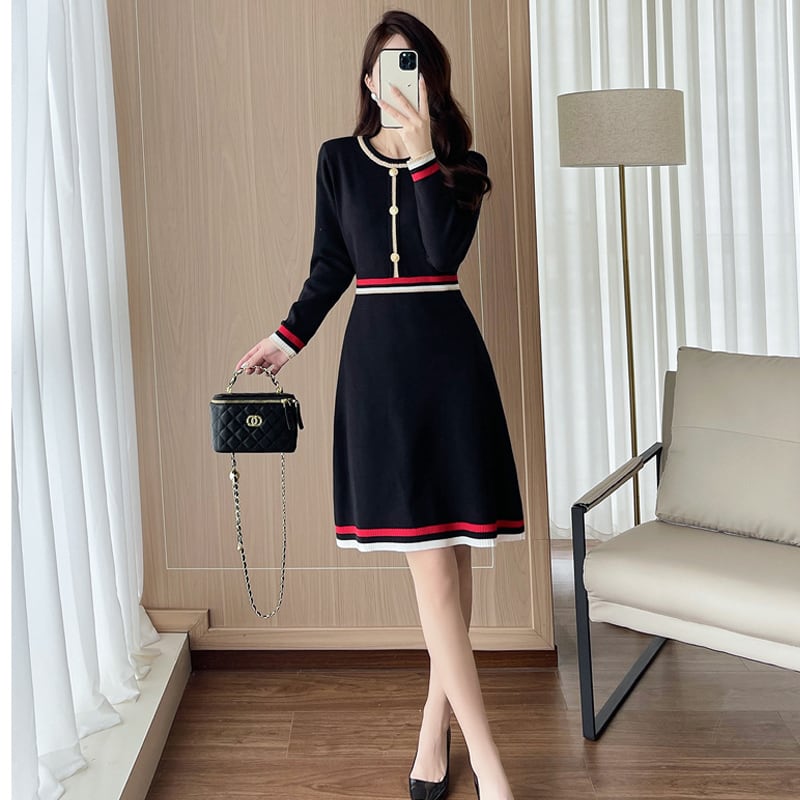 【dress】Aラインニットワンピース Q6650