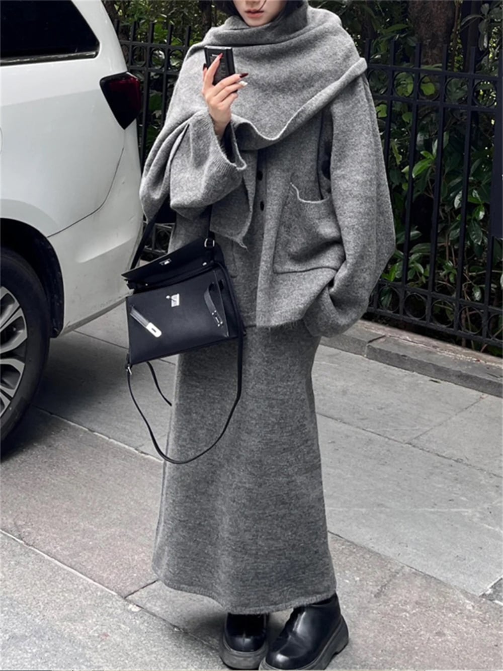 【set】ショール×カーディガン×ロングスカート3点セット Q6657
