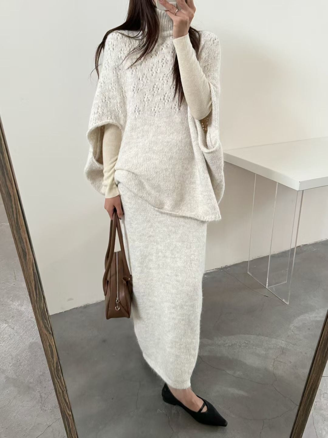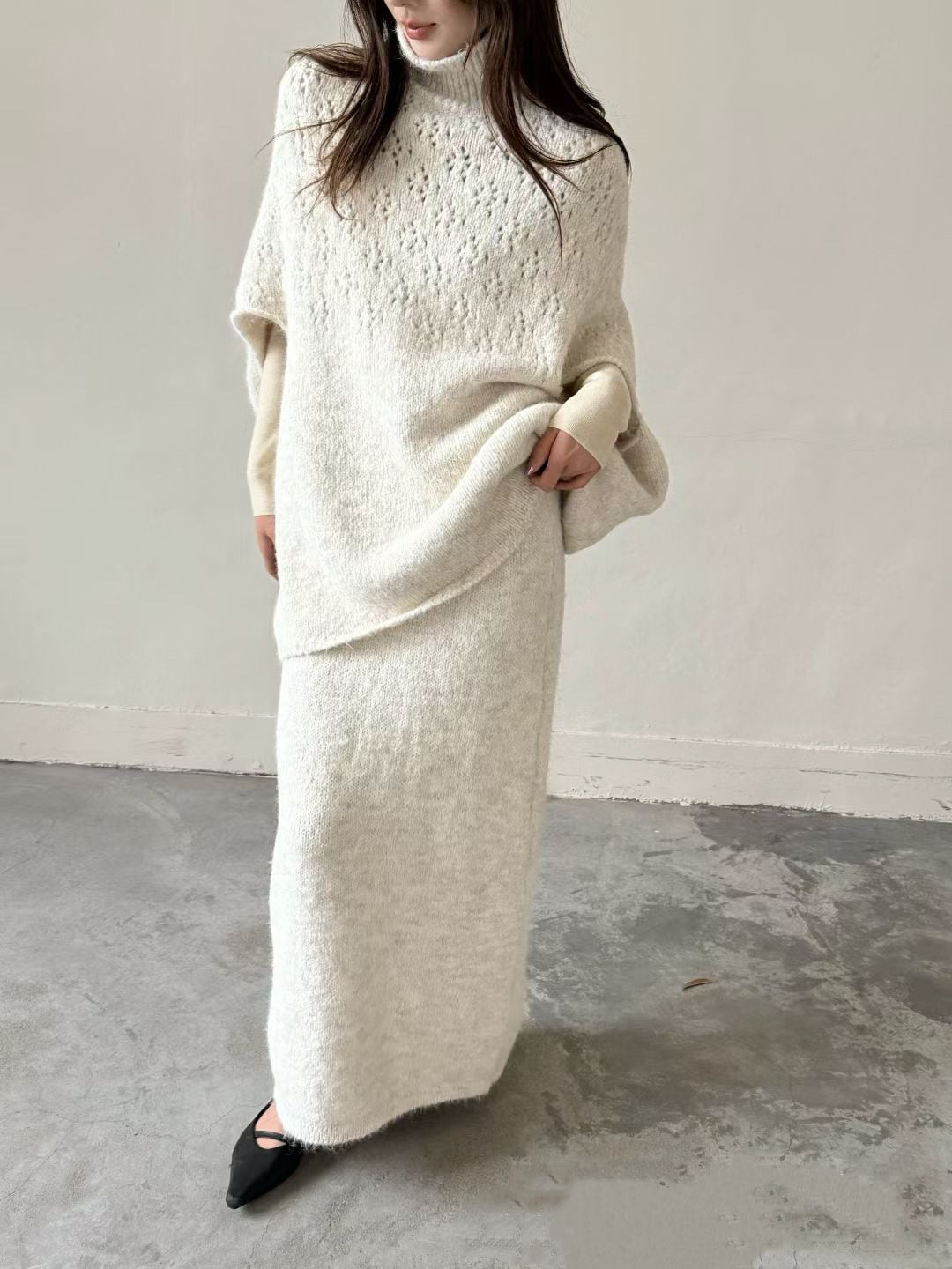 【set】ハイネックケープトップスxスカート 2点セット K0511