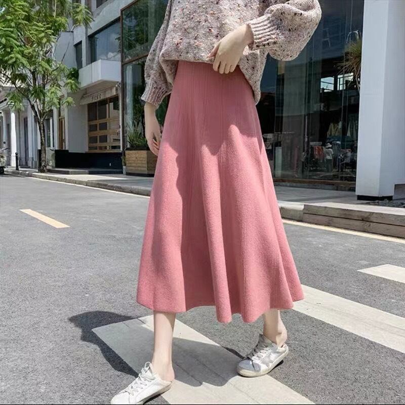 【bottoms】ハイウエスト Aライン ニットスカート L1009