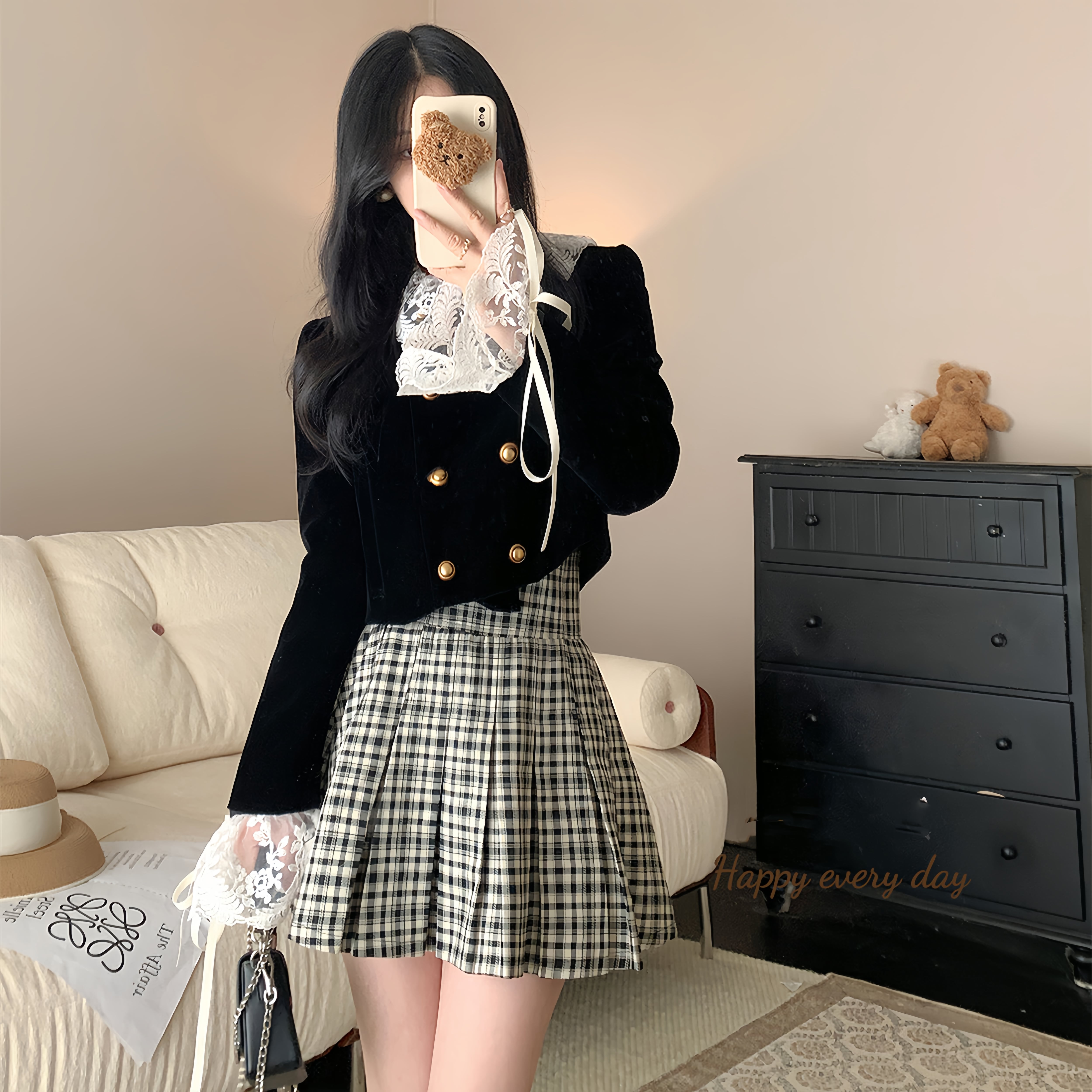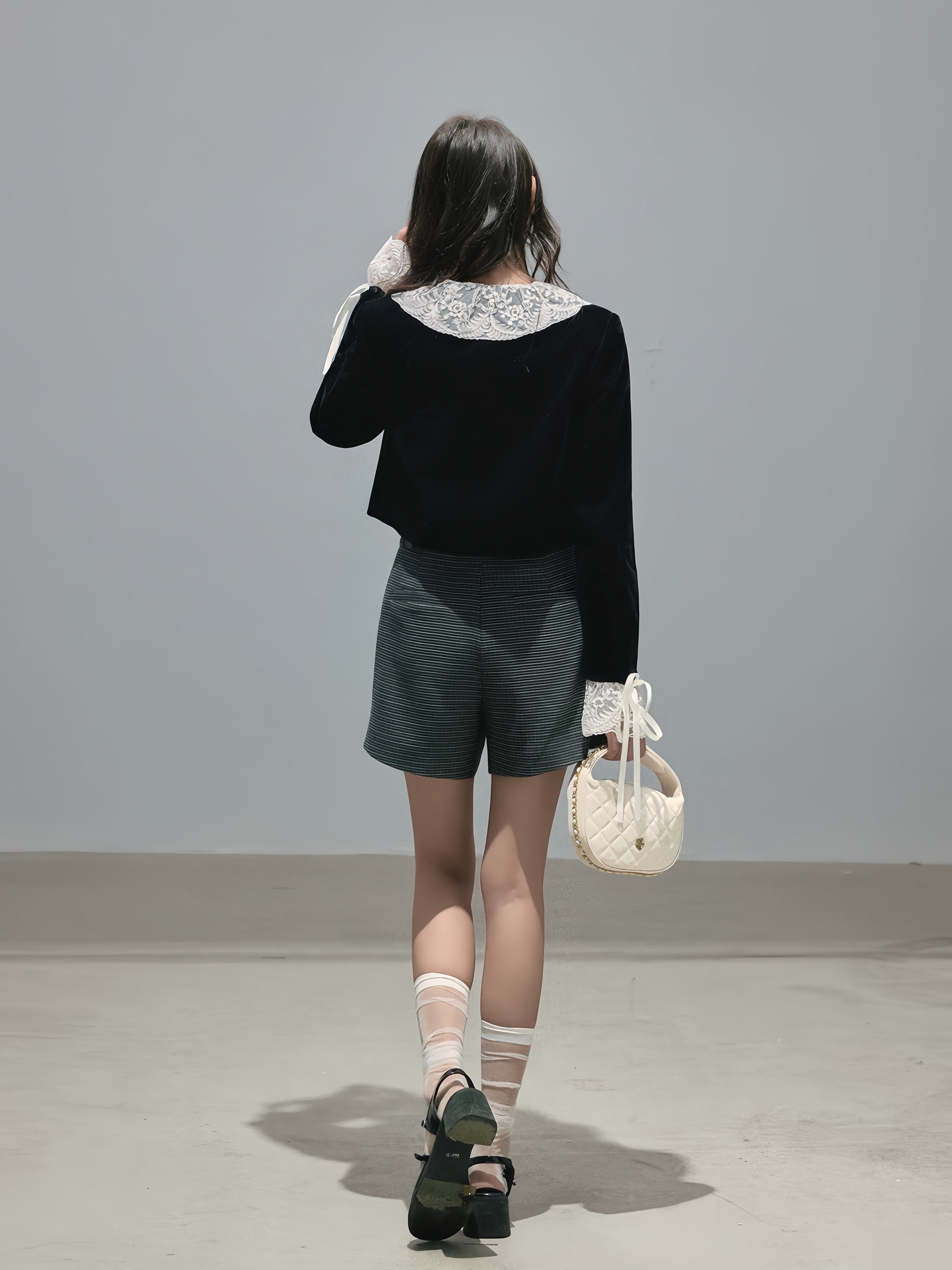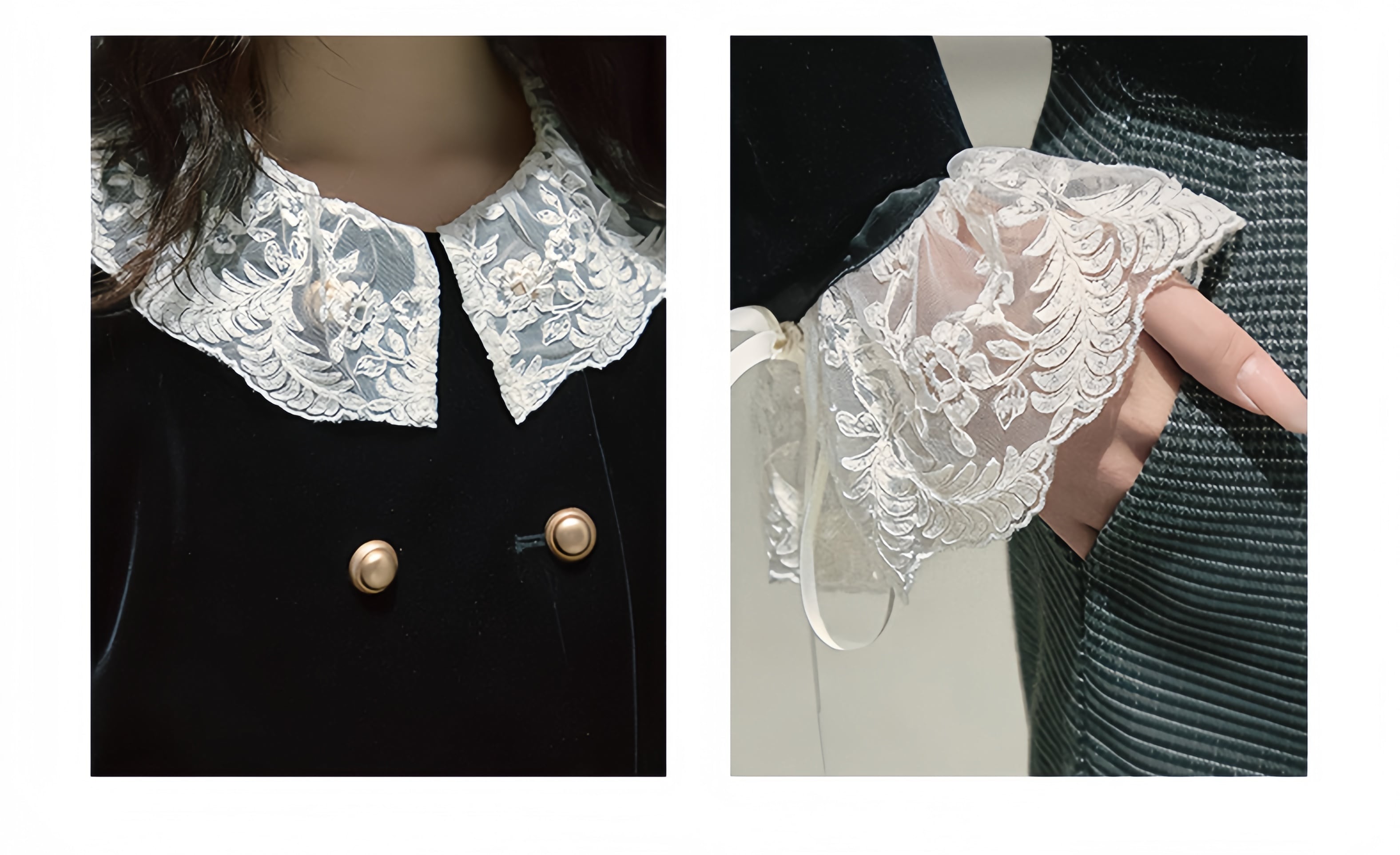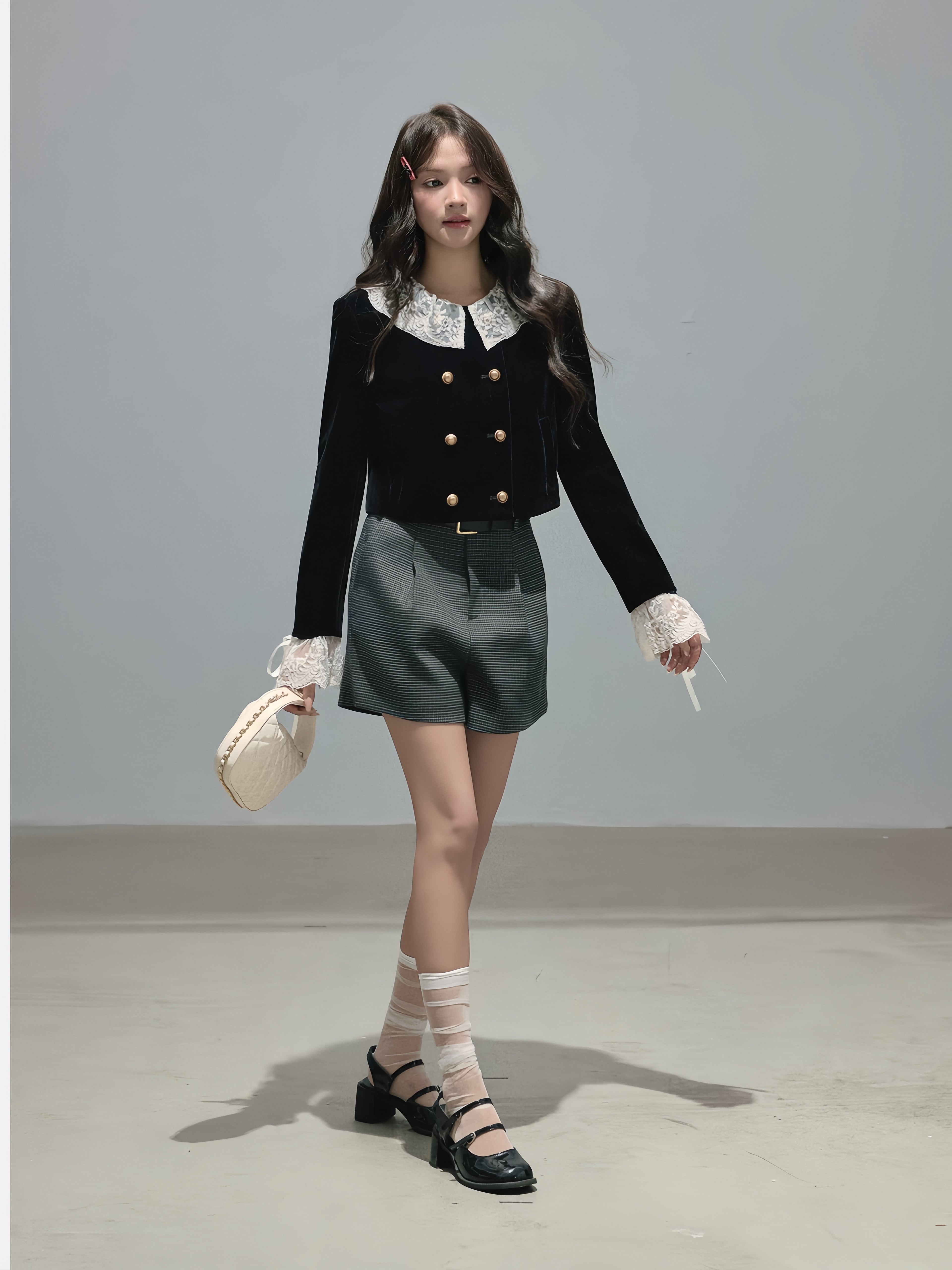 レースをあしらった襟とカフスが華やかさを添える、秋らしいコンパクトジャケット。襟・カフスともに取り外し可能な3WAY仕様で、気分やコーディネートに合わせてアレンジが楽しめます。フロントはクラシカルな金ボタンをあしらい、端正な印象に。フェミニンなワンピース合わせはもちろん、デニムと合わせたカジュアルダウンスタイルもおすすめの一着です。