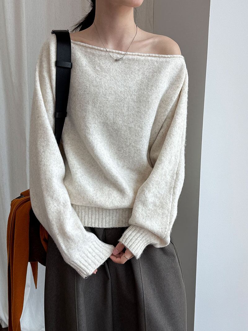 【tops】オフショルダーニットトップス Q6672