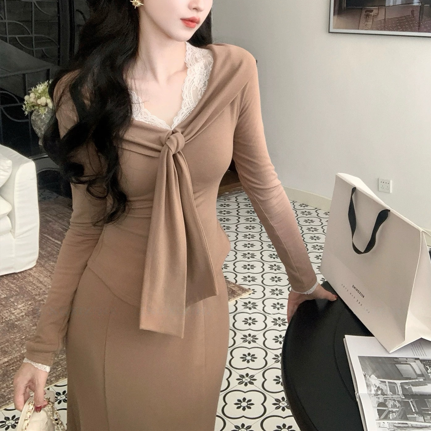 【set】レースドッキングトップス×マーメイドスカートセット N3364
