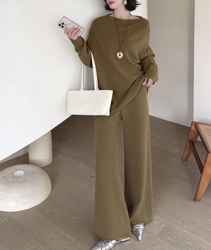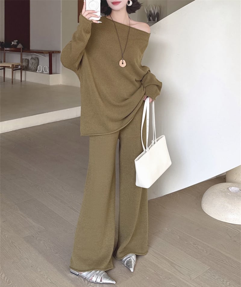 【set】オフショルトップス×ワイドパンツセット Q6682