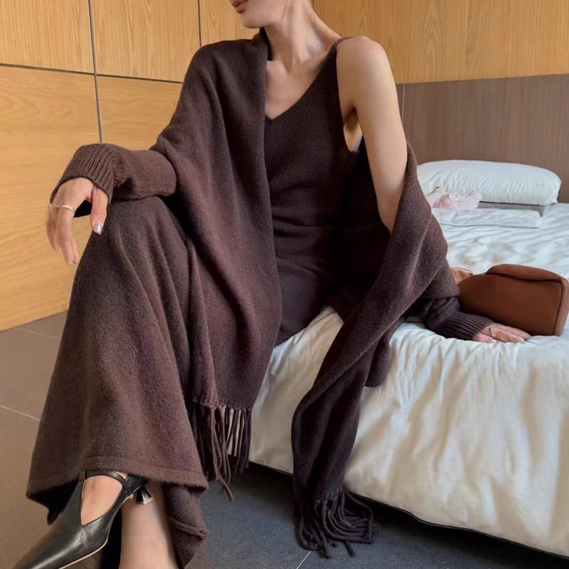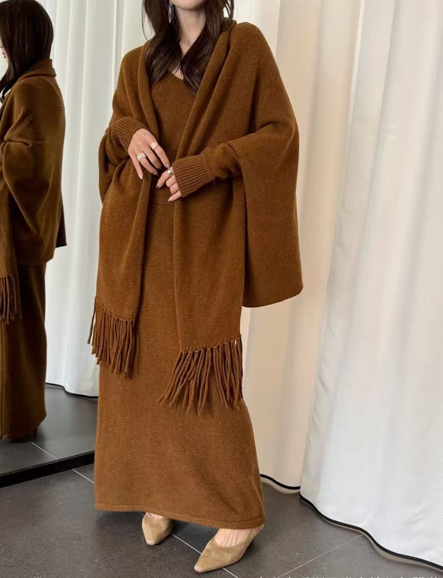 【set】ショール×ニットキャミ×ロングスカートセットQ6683