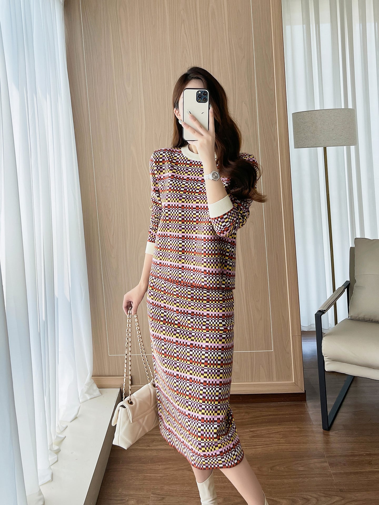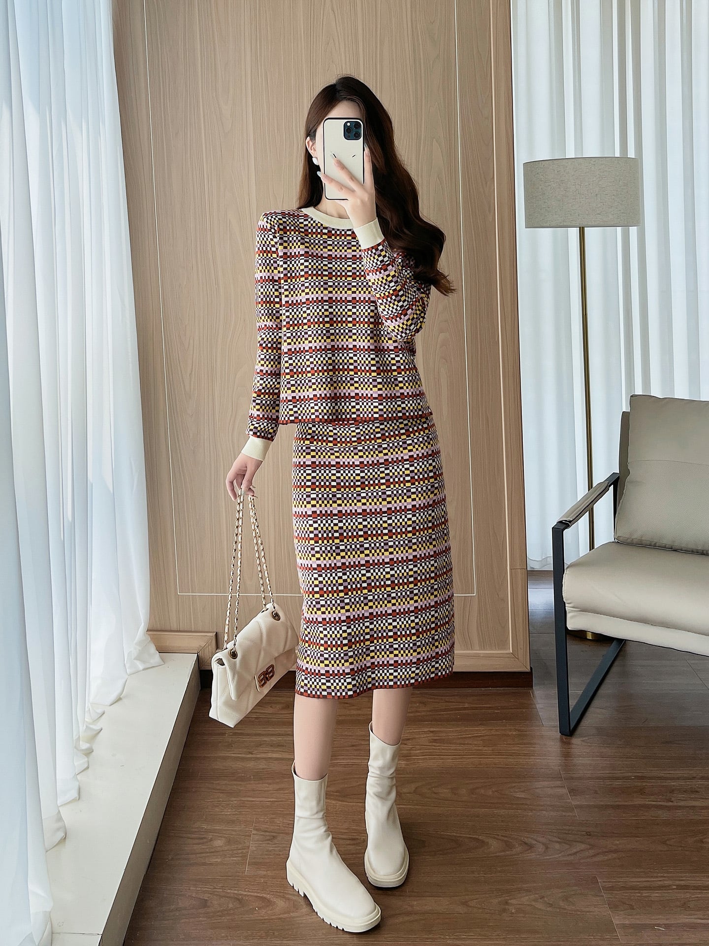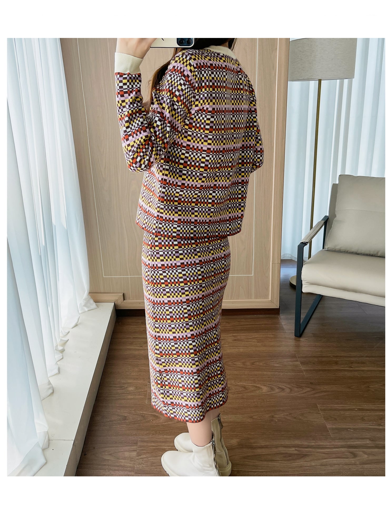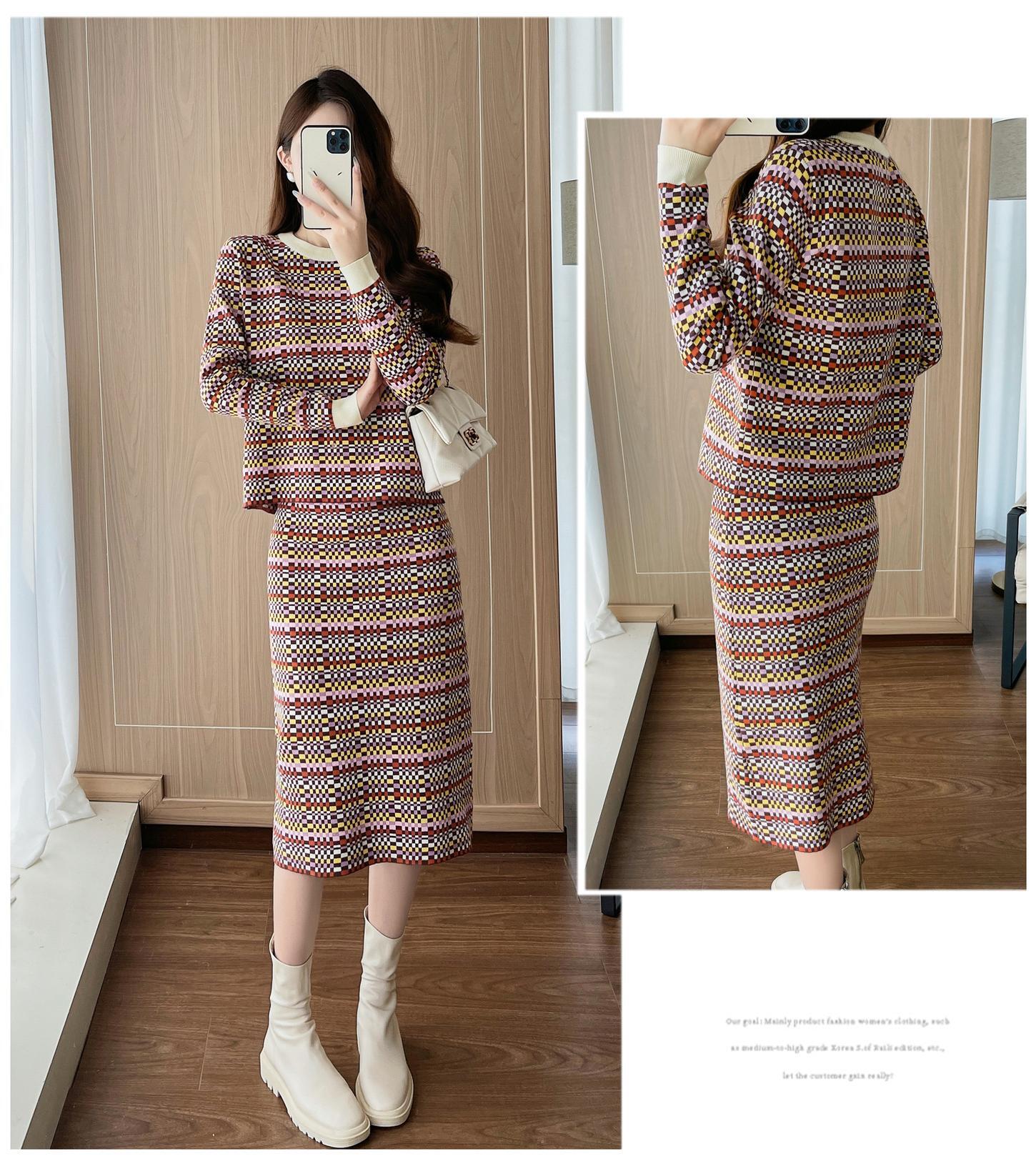 【set】ラウンドネックニットセーター×ニットスカートセット K0515