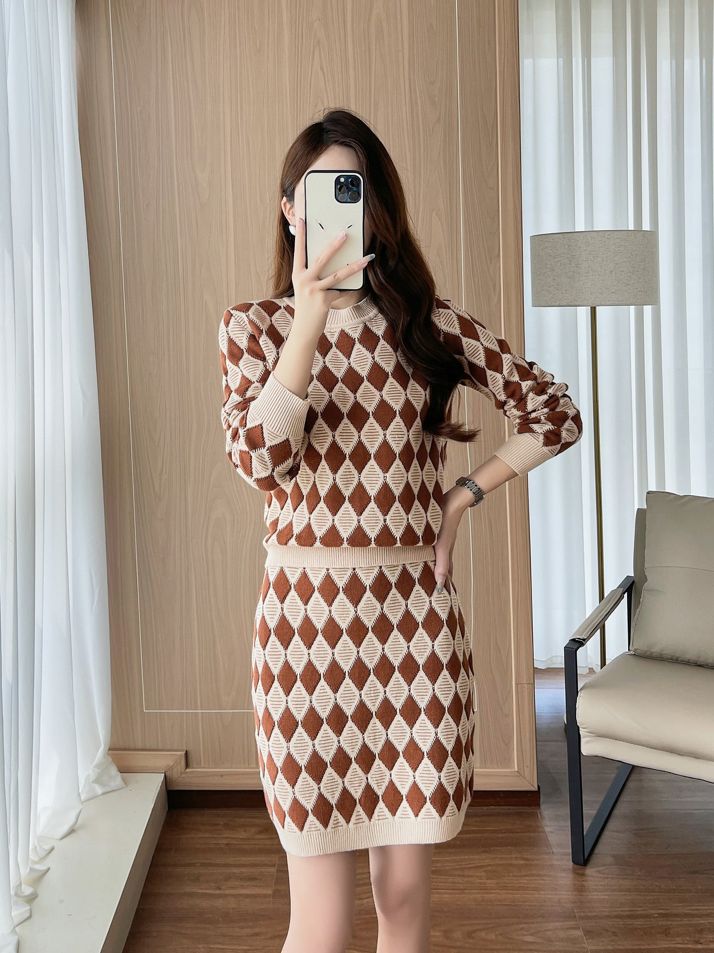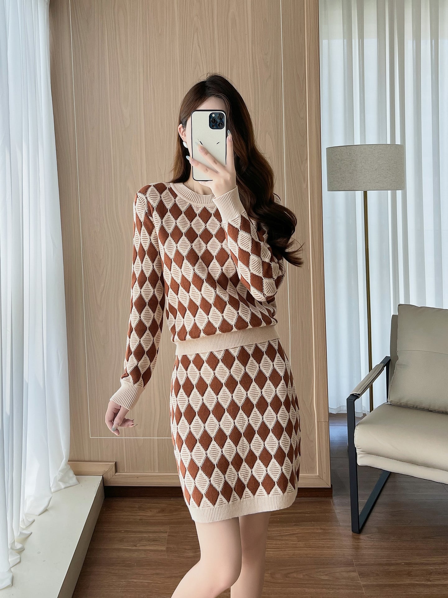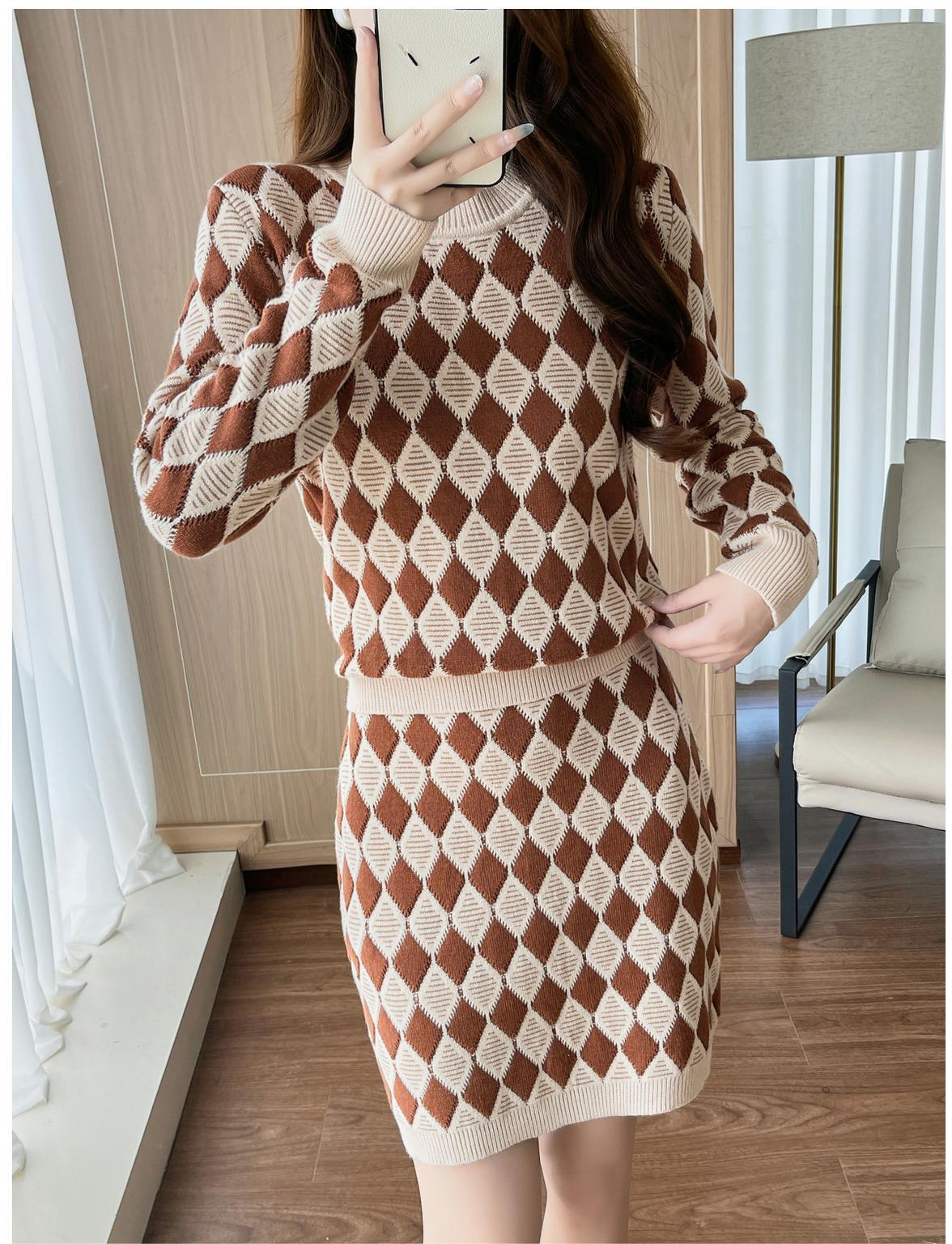 【set】ラウンドネックニットセーター×ニットスカートセット K0516