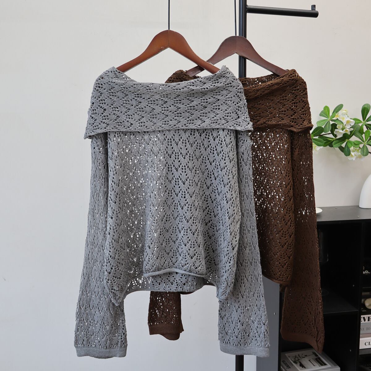 【tops】透かし彫りニットトップス Q6712