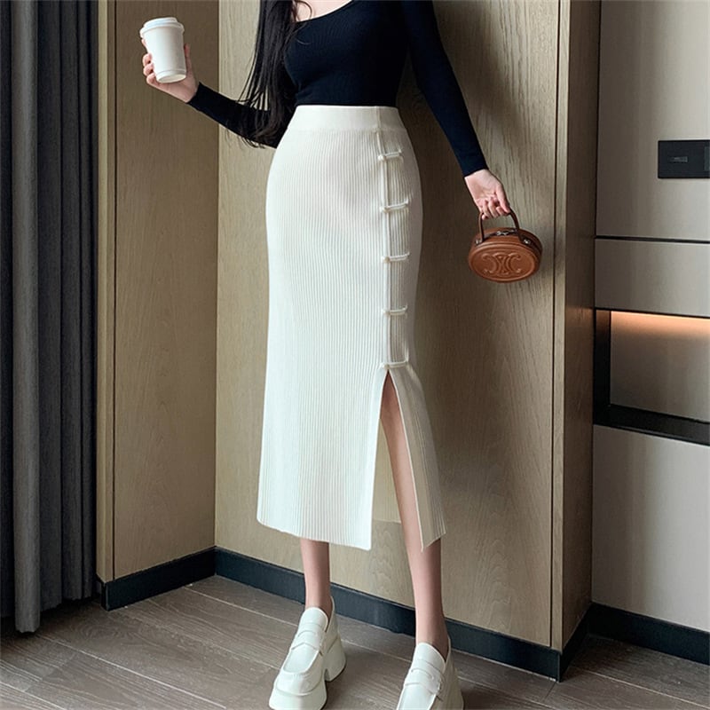 【bottoms】ハイウエスト ニットミディスカート L1023