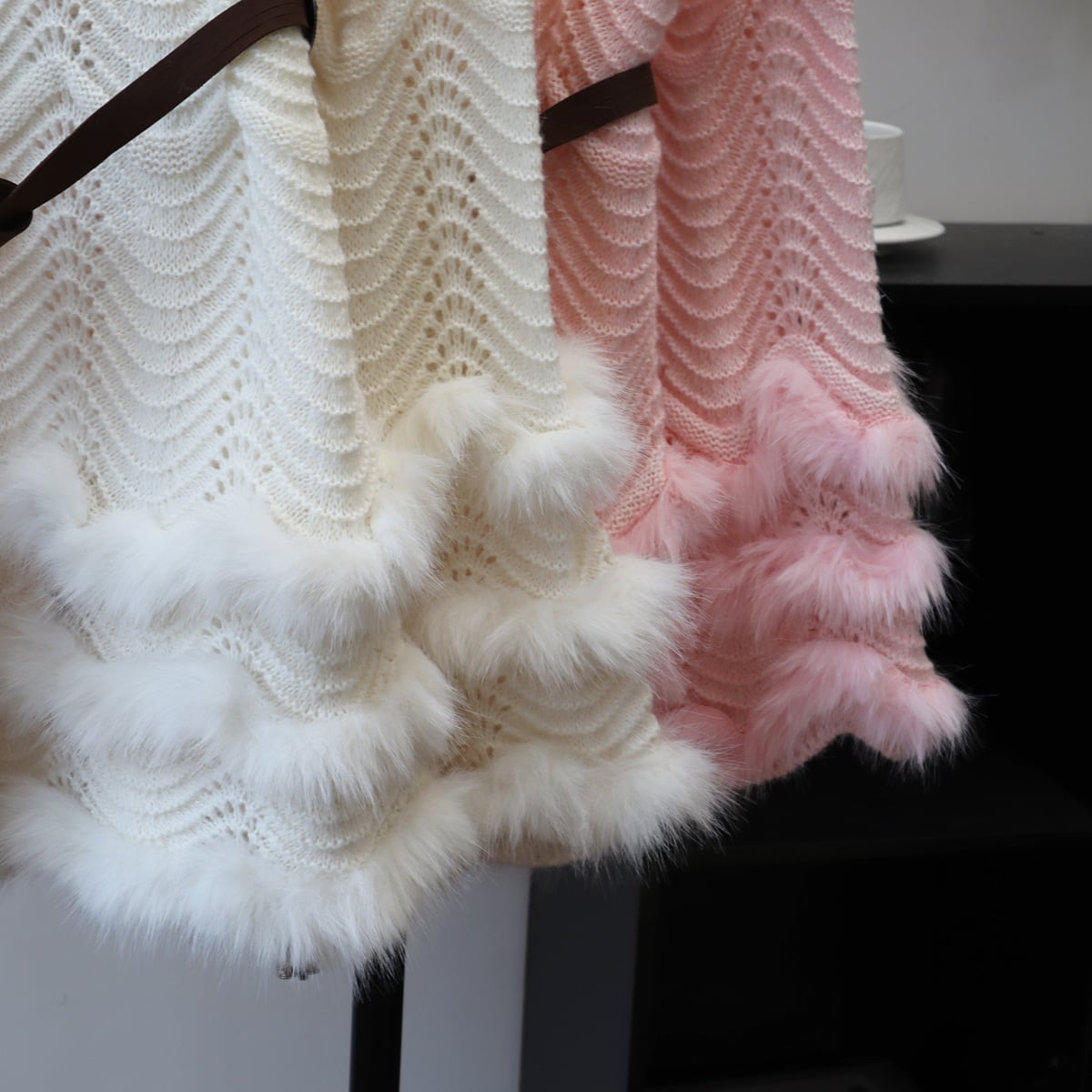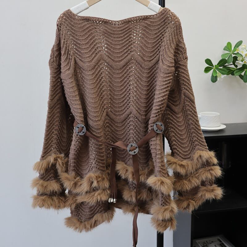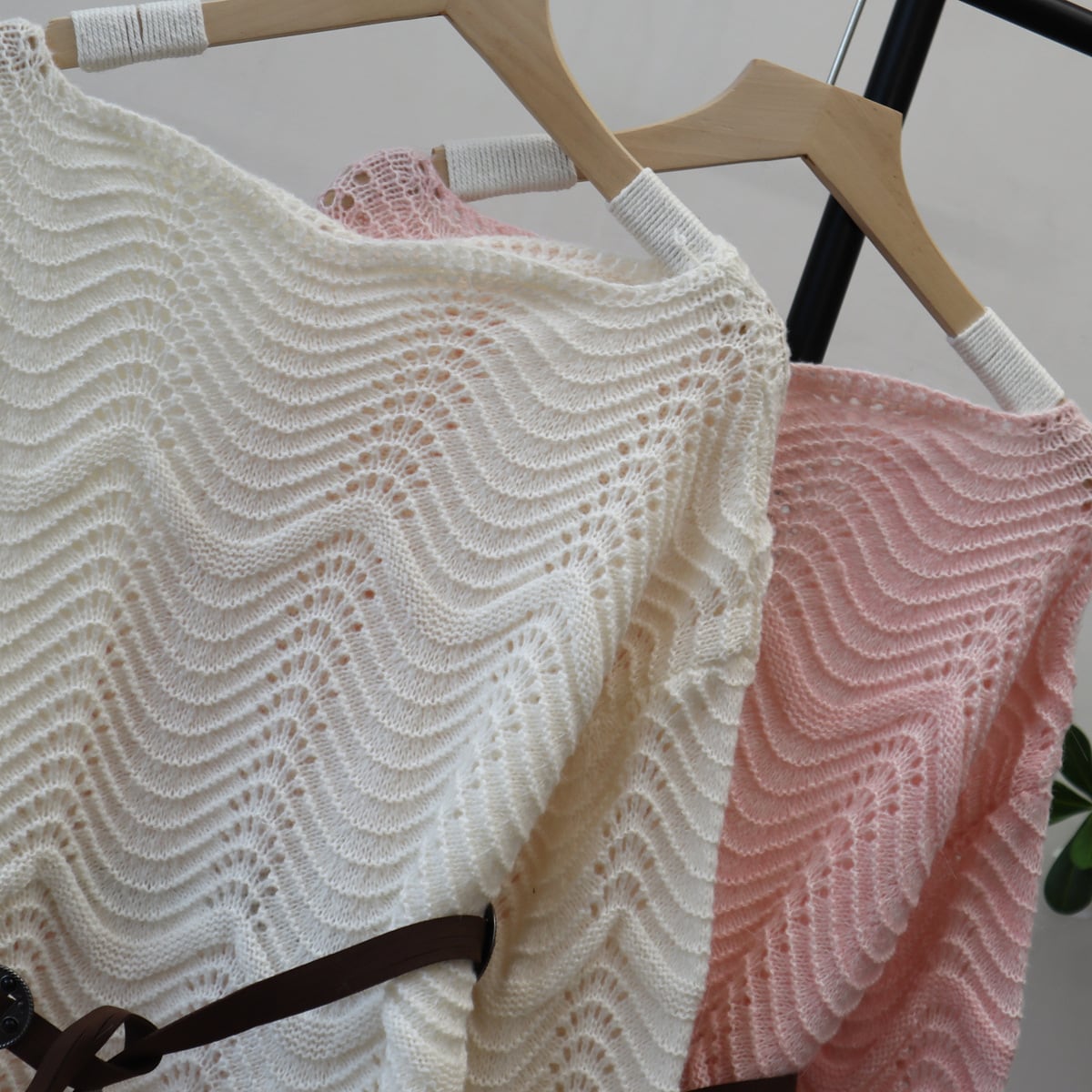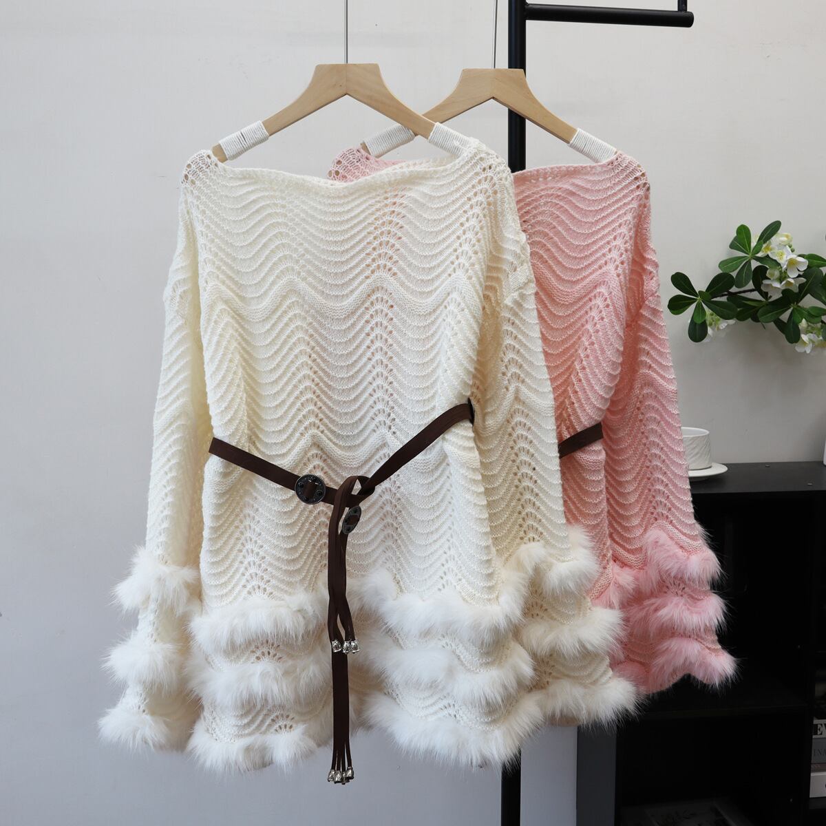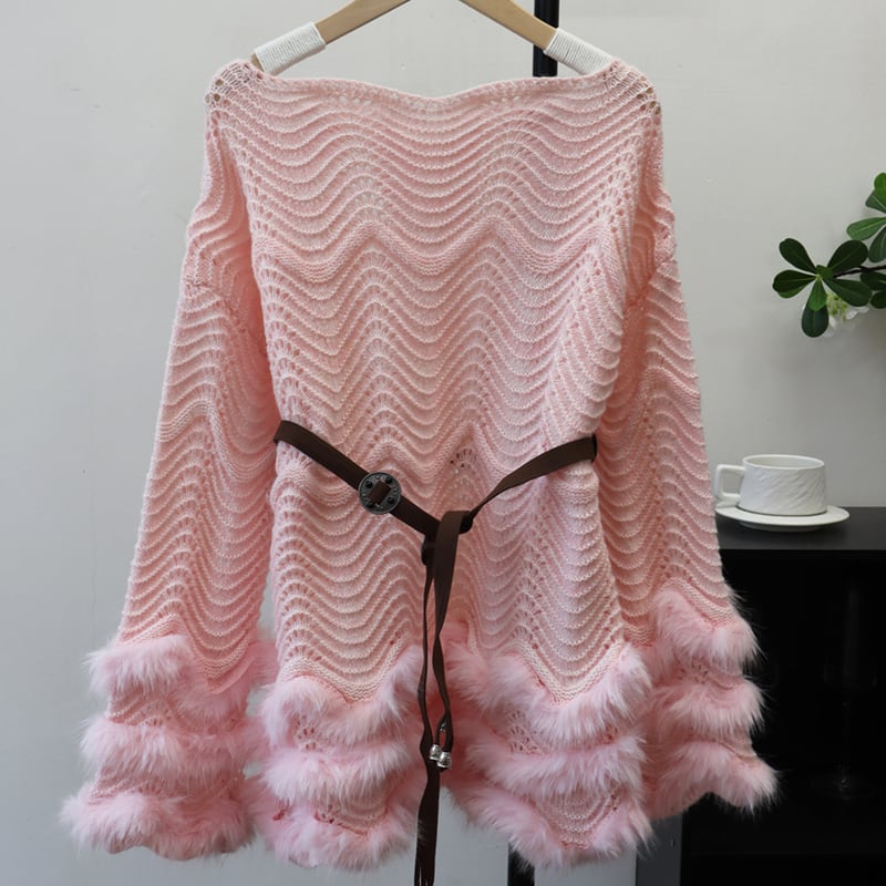 【tops】ファードッキング透かし彫りニットトップス Q6714