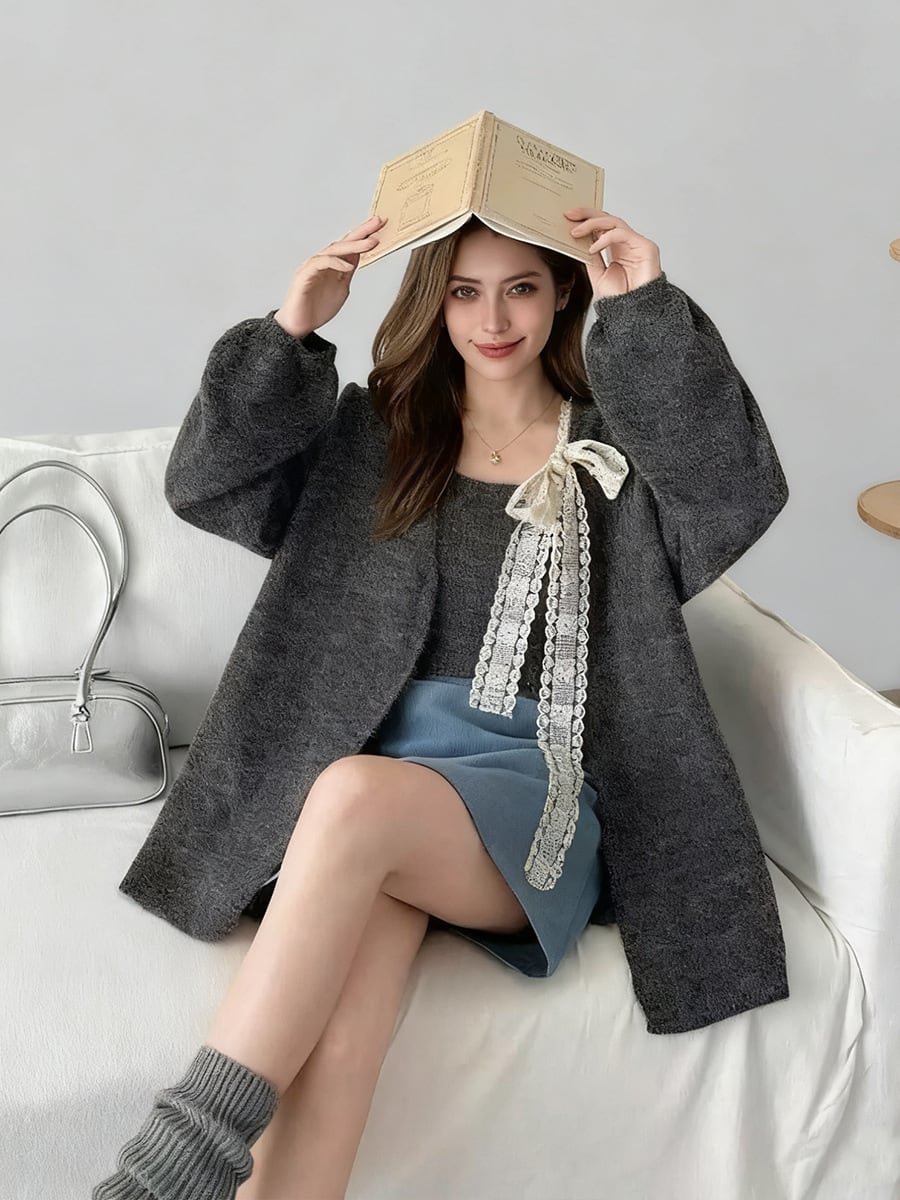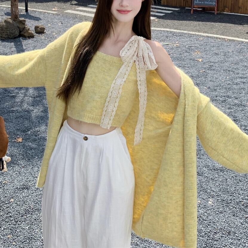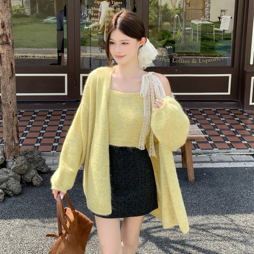【set】ショルダーリボンキャミソール×カーディガンセット N3372