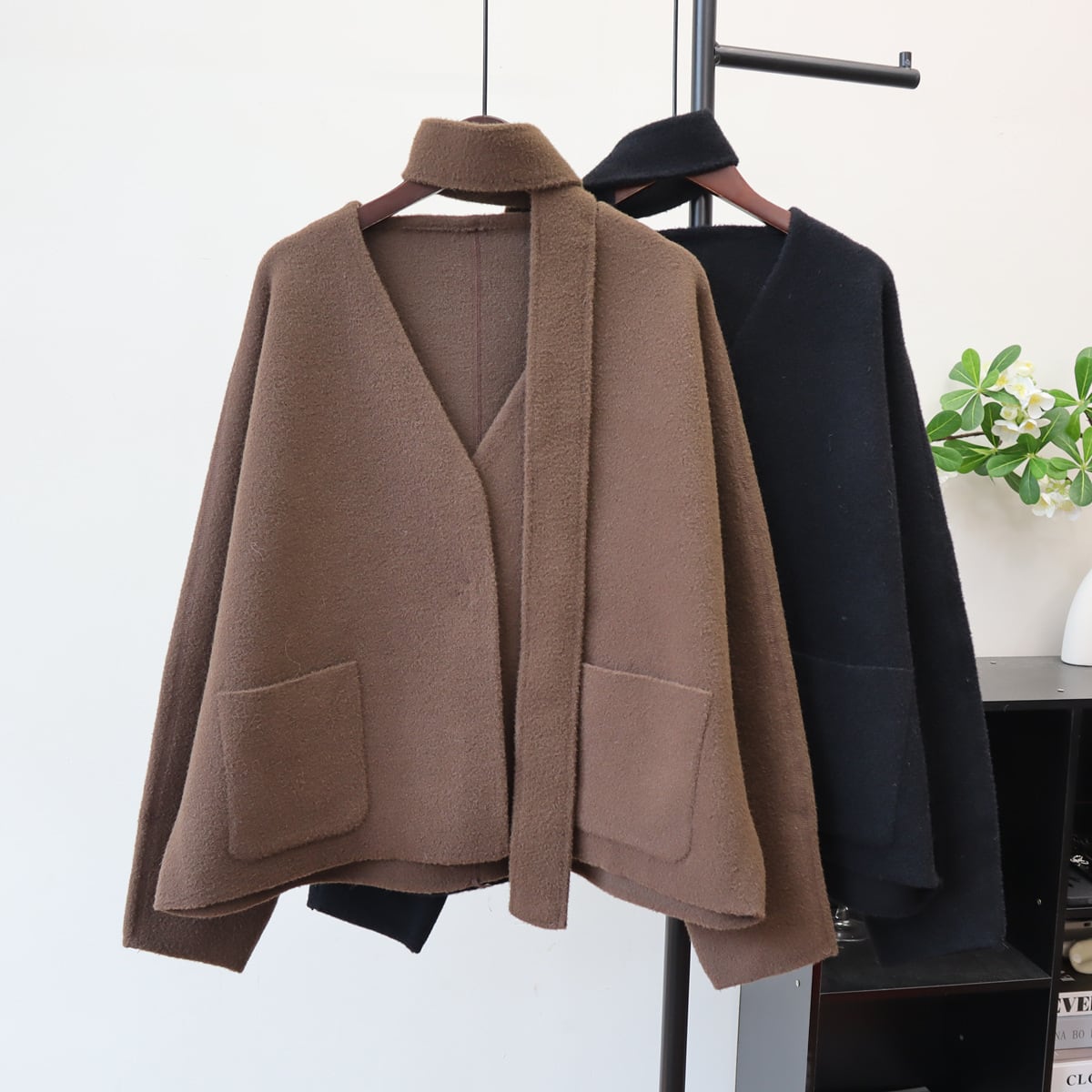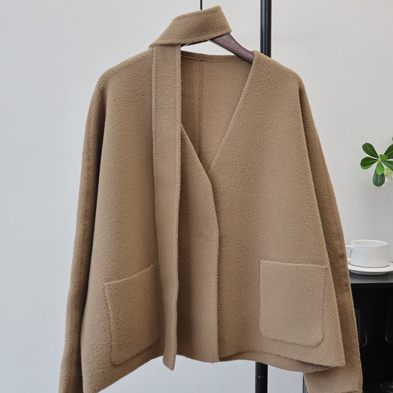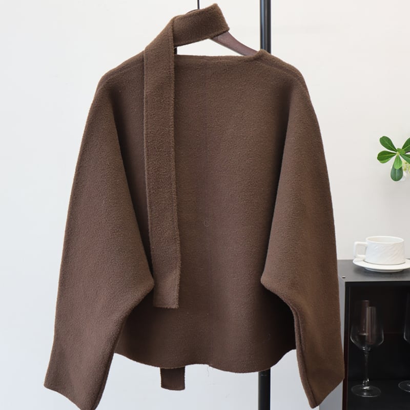 【outer】スカーフ付きニットカーディガン Q6718