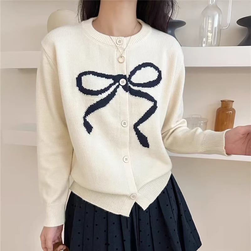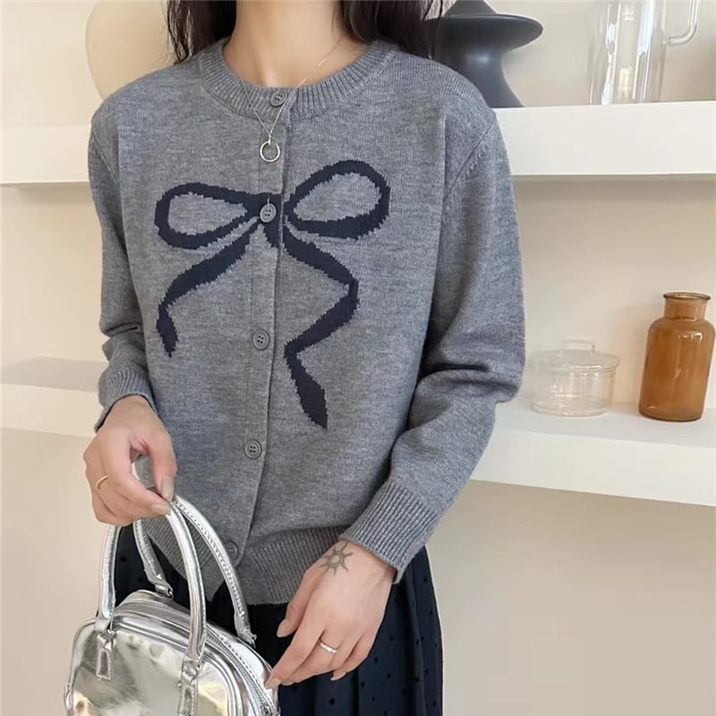 【outer】リボン柄ニットカーディガン Q6720