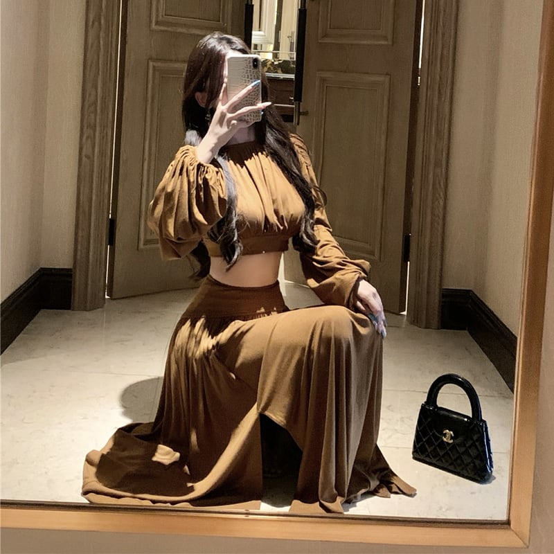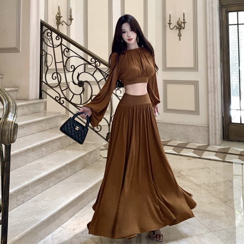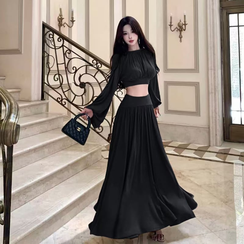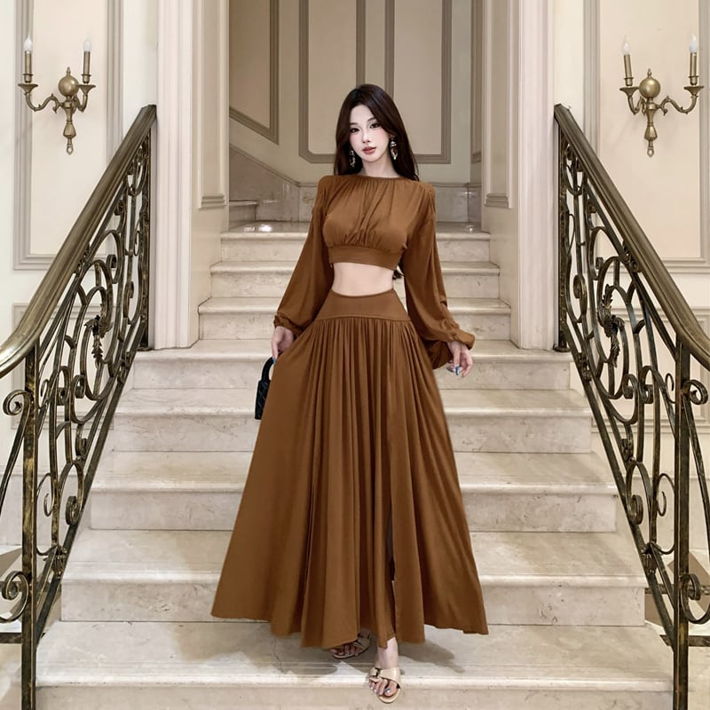 【set】ミドリフブラウス×プリーツスカートセット Q6732