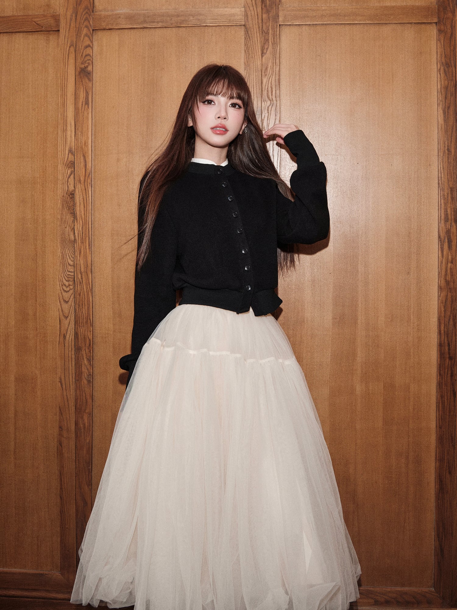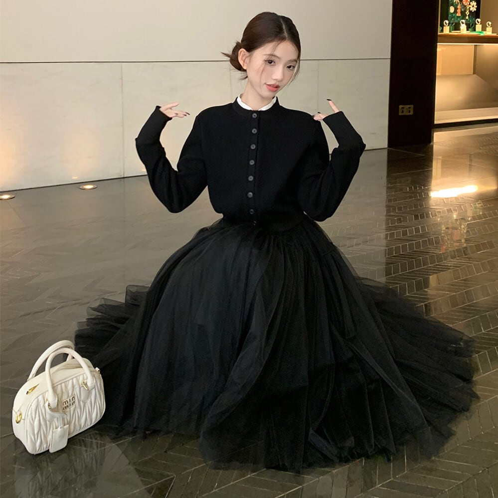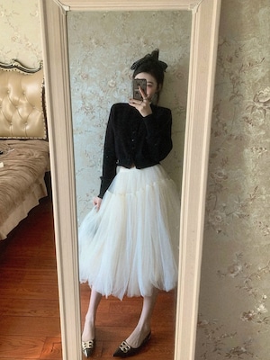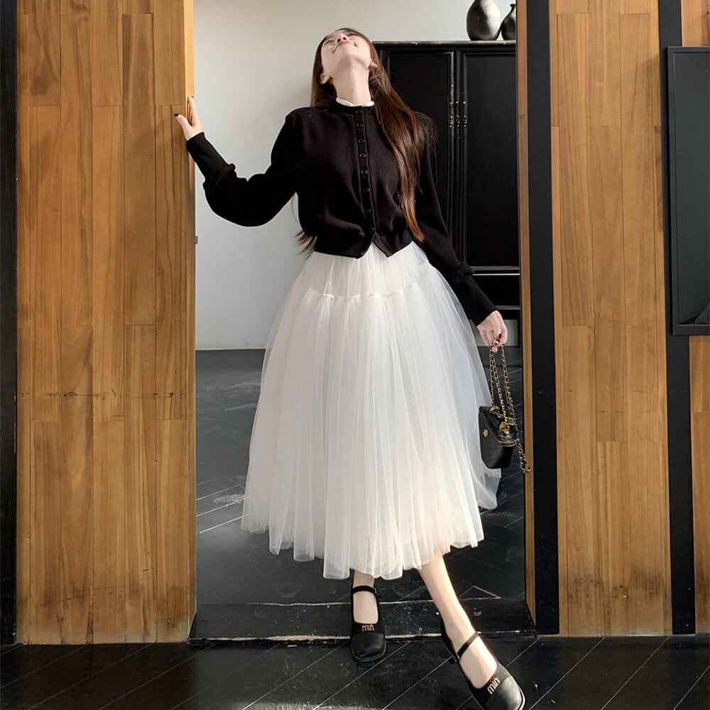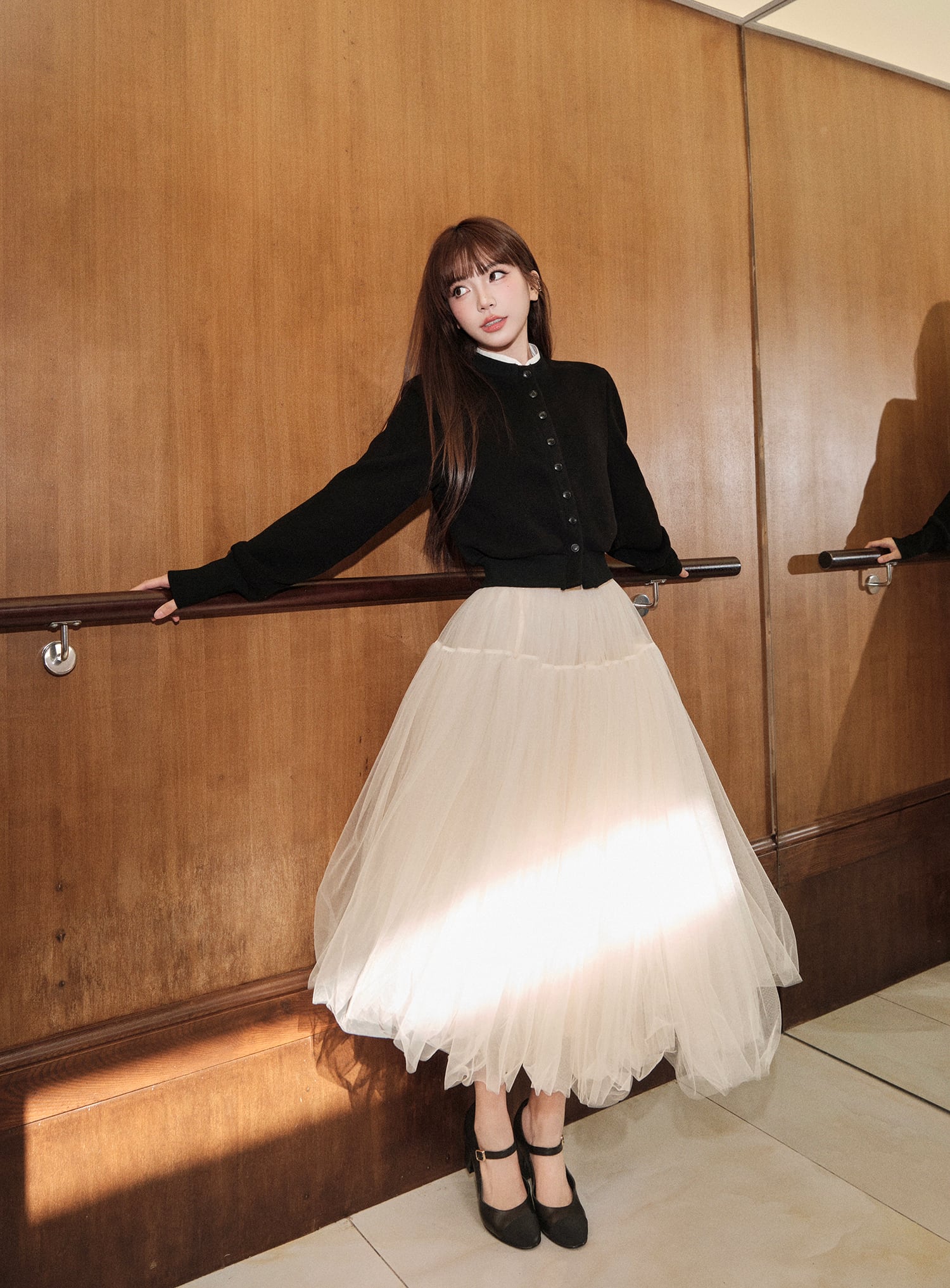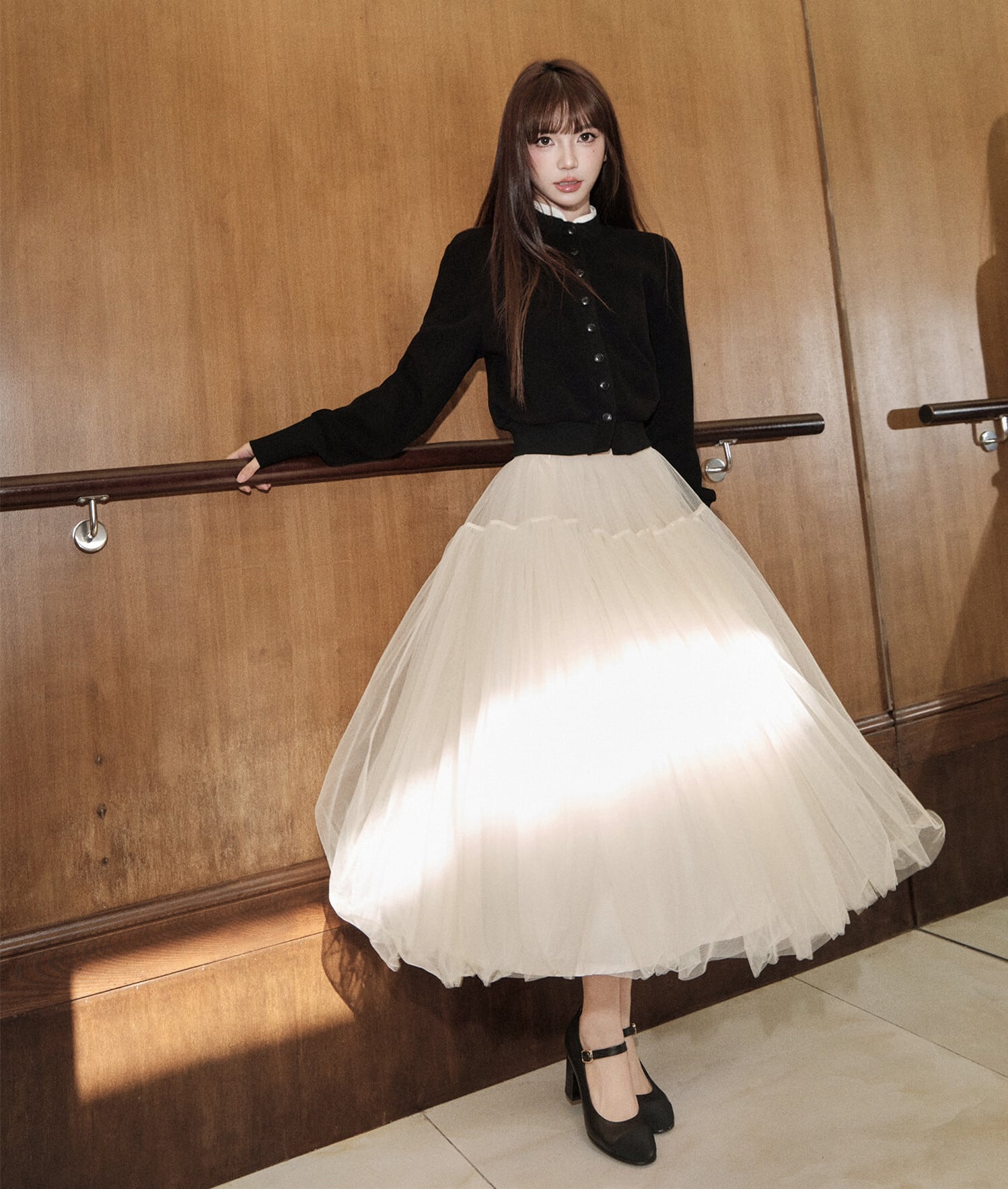 【set】ドッキングカーディガン×チュールスカートセット N3376